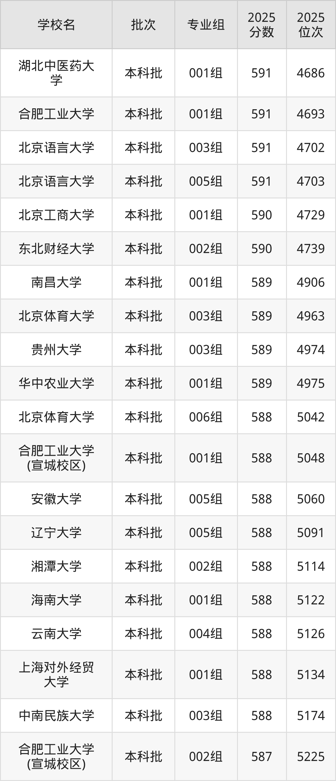 这些都是2026年高考历史类5186名~5358名考生可以报考的大学,更多学校名单如下表所示: