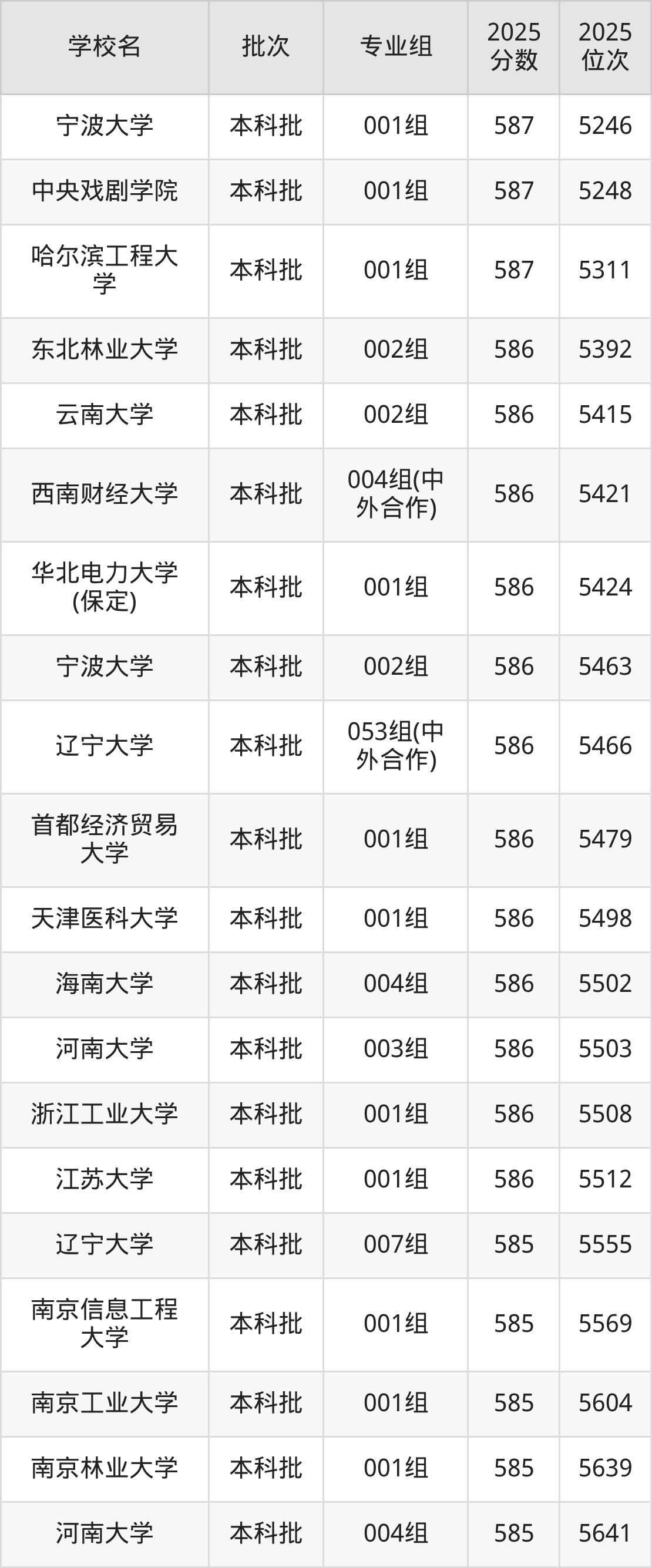 2025年安徽高考历史类587分(5186名~5358名)能上的大学有哈尔滨工程大学001组、合肥工业大学(宣城校区)002组、宁波大学001组、中央戏剧学院001组。