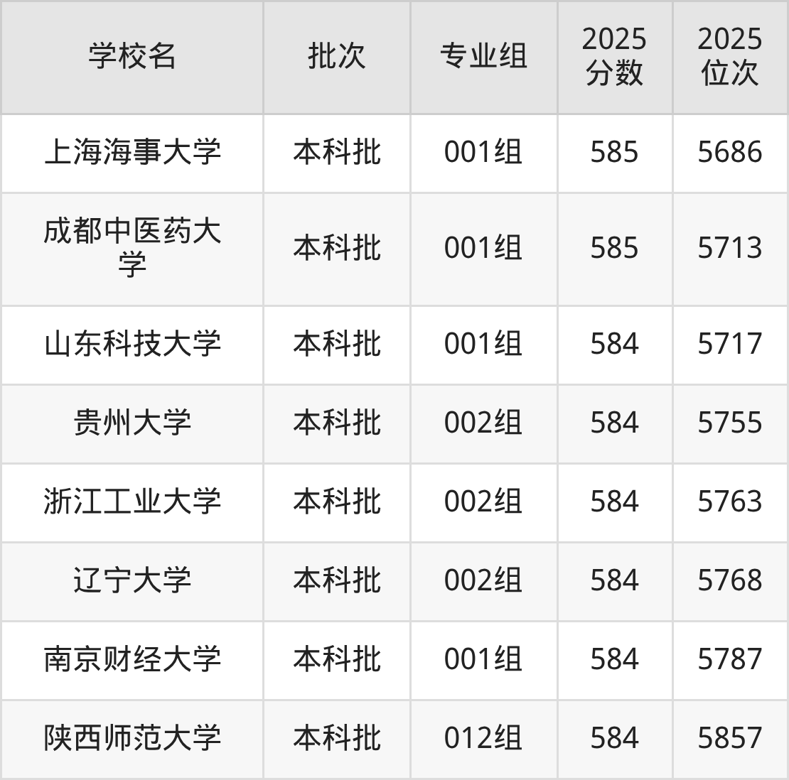 由于高考录取分数线历年波动较大,因此本文以该分数对应的位次排名为大家整理能上的大学名单。