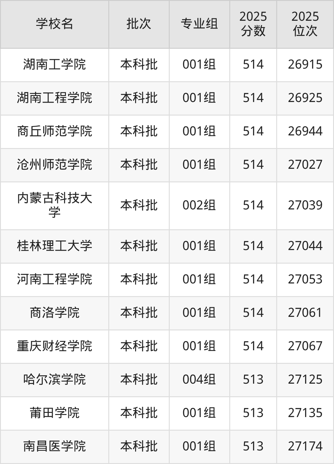 这些都是2026年高考历史类26279名~26691名考生可以报考的大学,更多学校名单如下表所示: