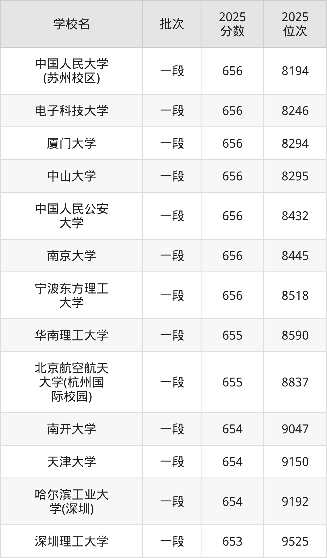 2025年浙江高考655分(8585名~9037名)能上的大学有北京航空航天大学(杭州国际校园)、华南理工大学。
