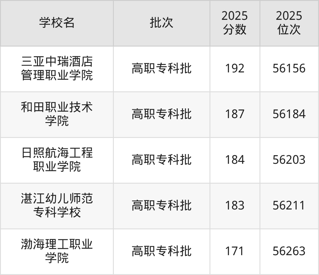 2025年辽宁高考历史类220分(55735名~55765名)能上的大学有海南东方新丝路职业学院。