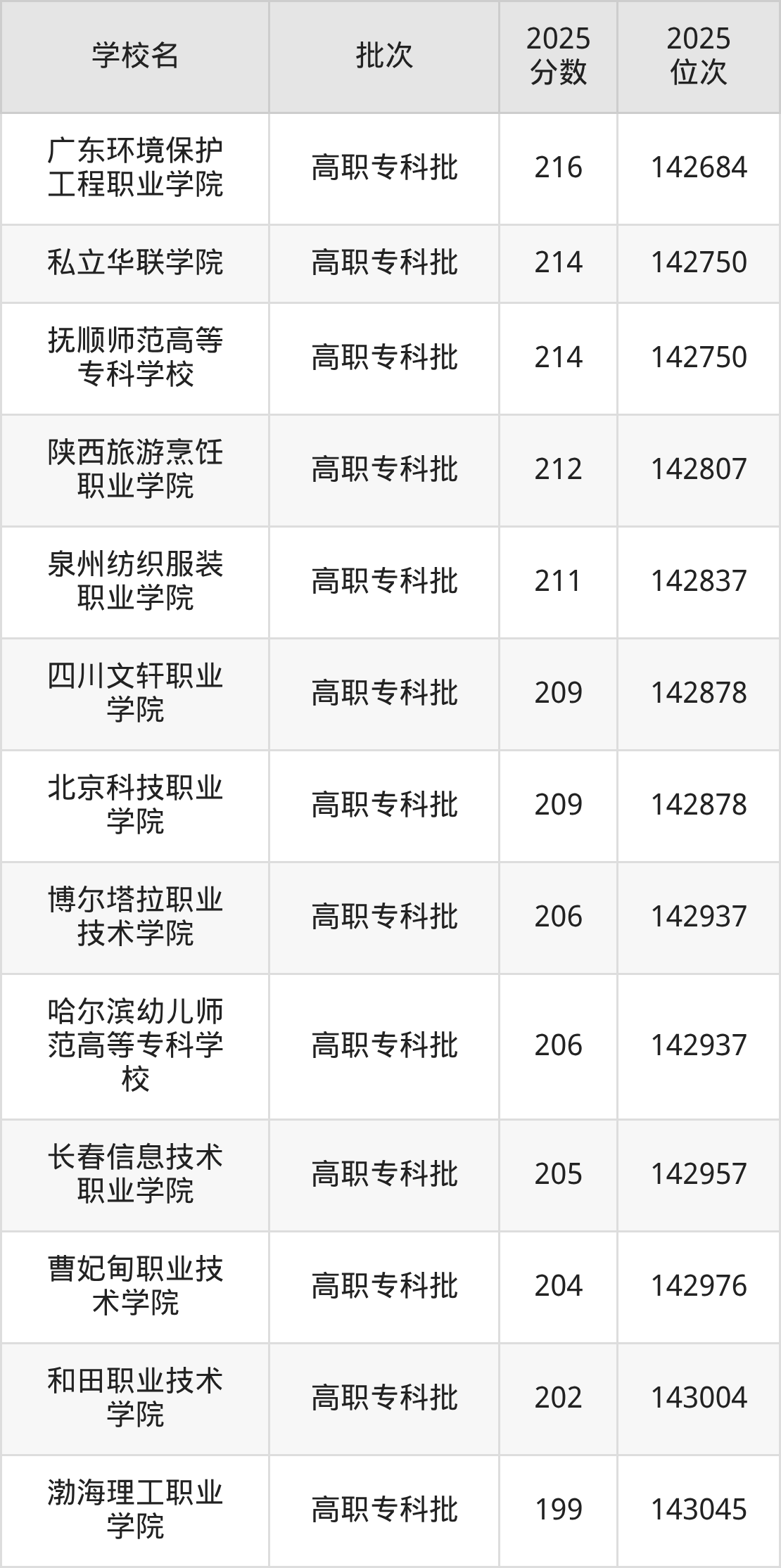另外录取位次低于该区间(较稳妥)的有重庆轻工职业学院(142583名)、齐齐哈尔高等师范专科学校(142583名)等;录取位次高于该区间(可冲)的有长春早期教育职业学院(142522名)、北海职业学院(142492名)等。