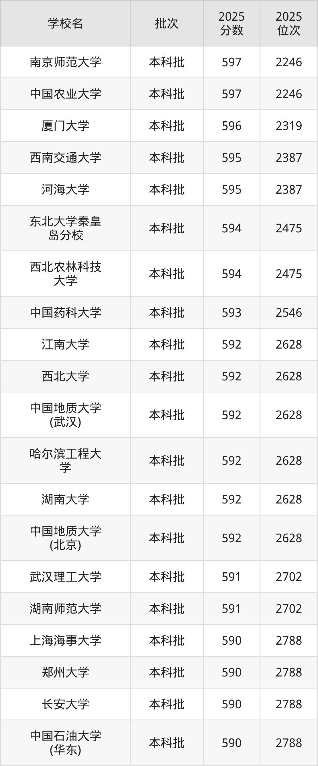2025年辽宁高考历史类590分(2703名~2788名)能上的大学有郑州大学、中国石油大学(华东)、长安大学、上海海事大学。