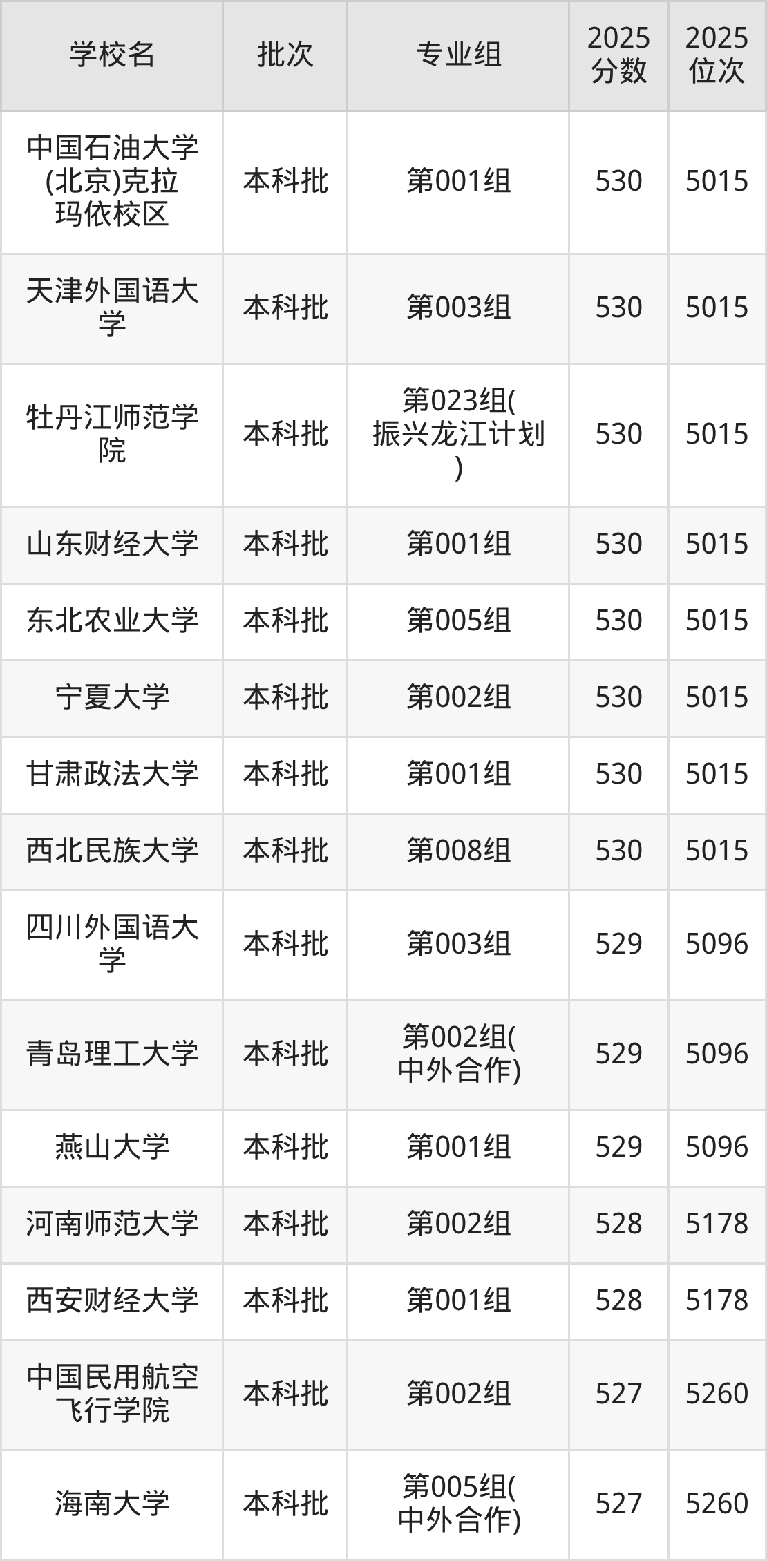 这些都是2026年高考历史类4764名~4846名考生可以报考的大学,更多学校名单如下表所示: