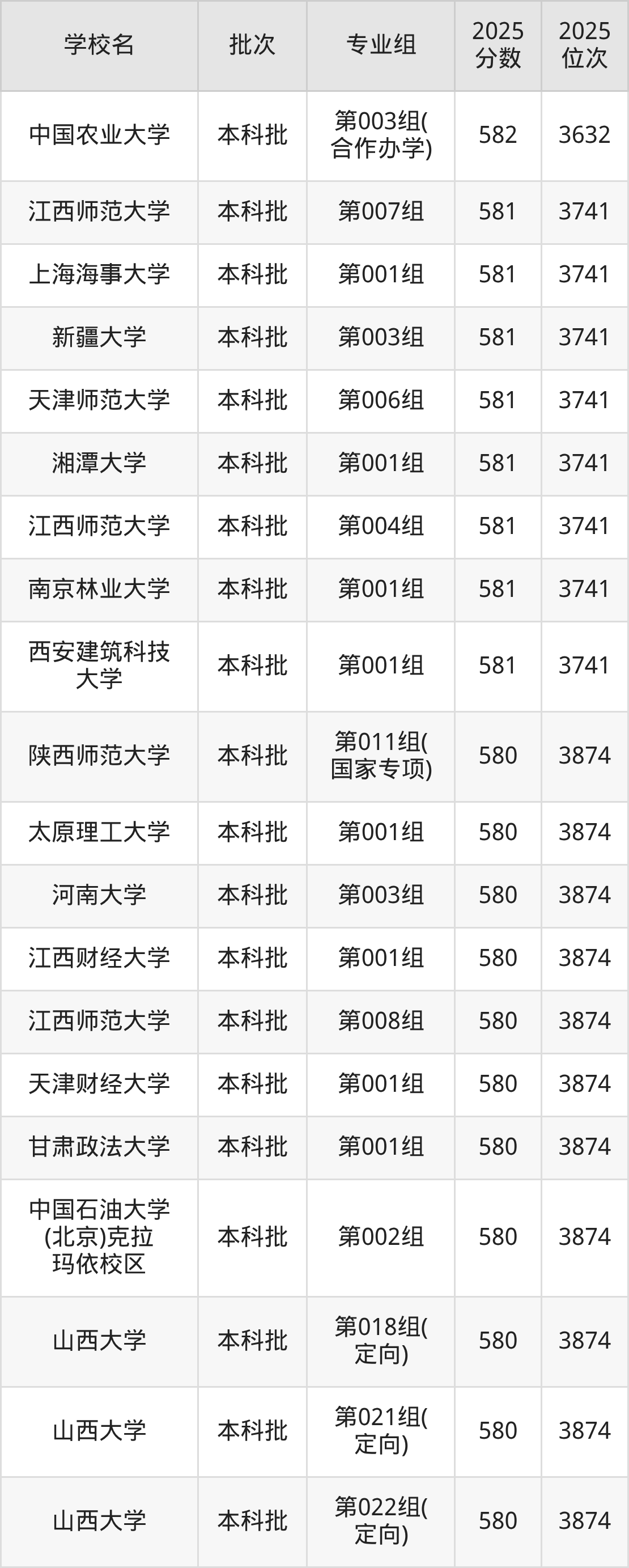 二、山西580分位次排名能上的大学