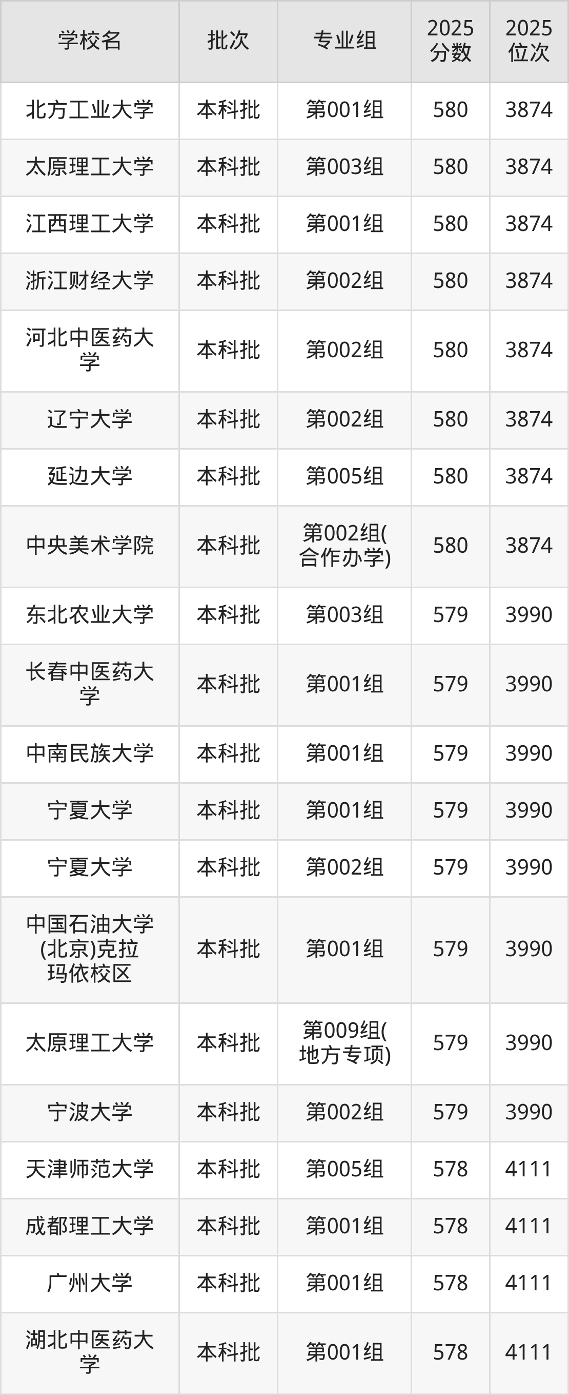 2025年山西高考历史类580分(3742名~3874名)能上的大学有北方工业大学第001组、中央美术学院第002组(合作办学)、天津财经大学第001组、河北中医药大学第002组等。