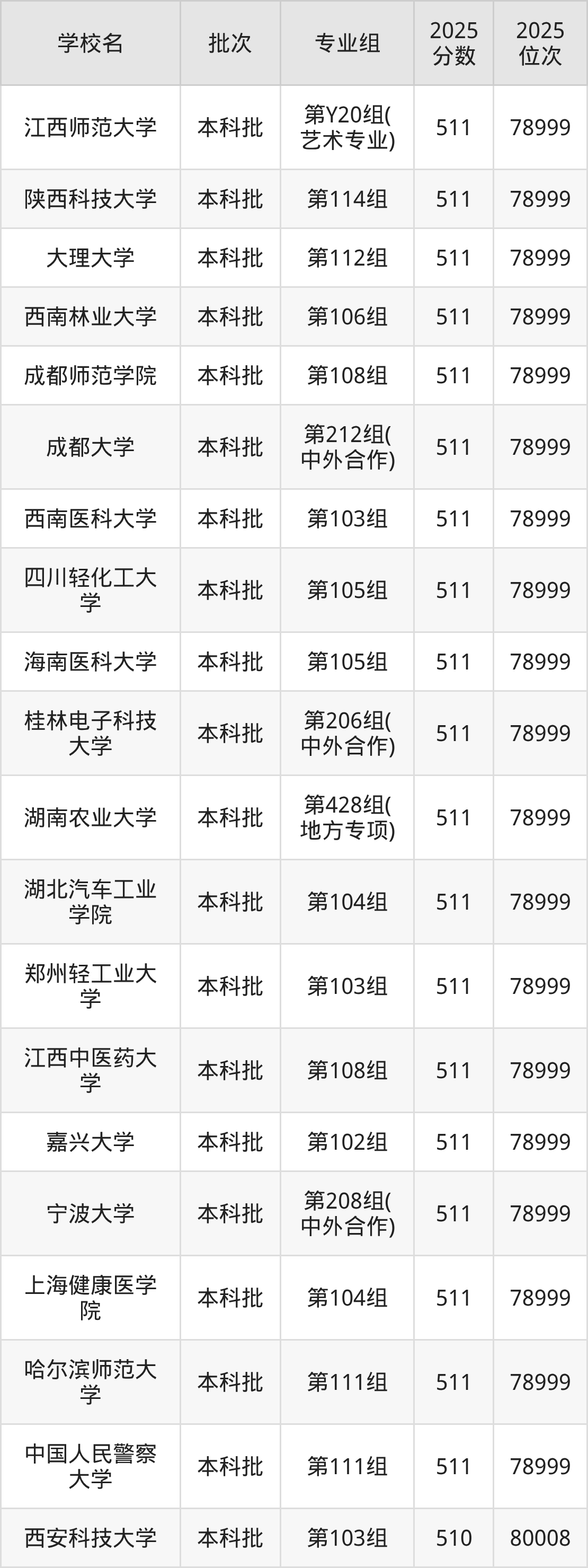 这些都是2026年高考物理类79000名~80008名考生可以报考的大学,更多学校名单如下表所示: