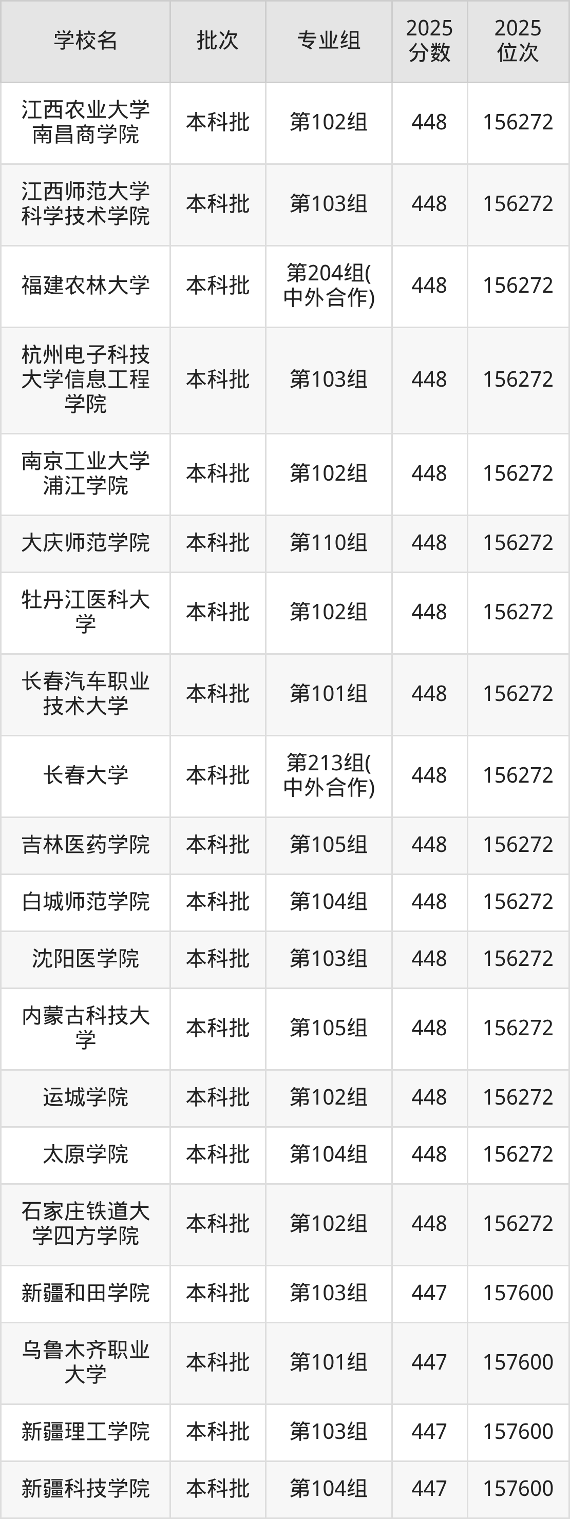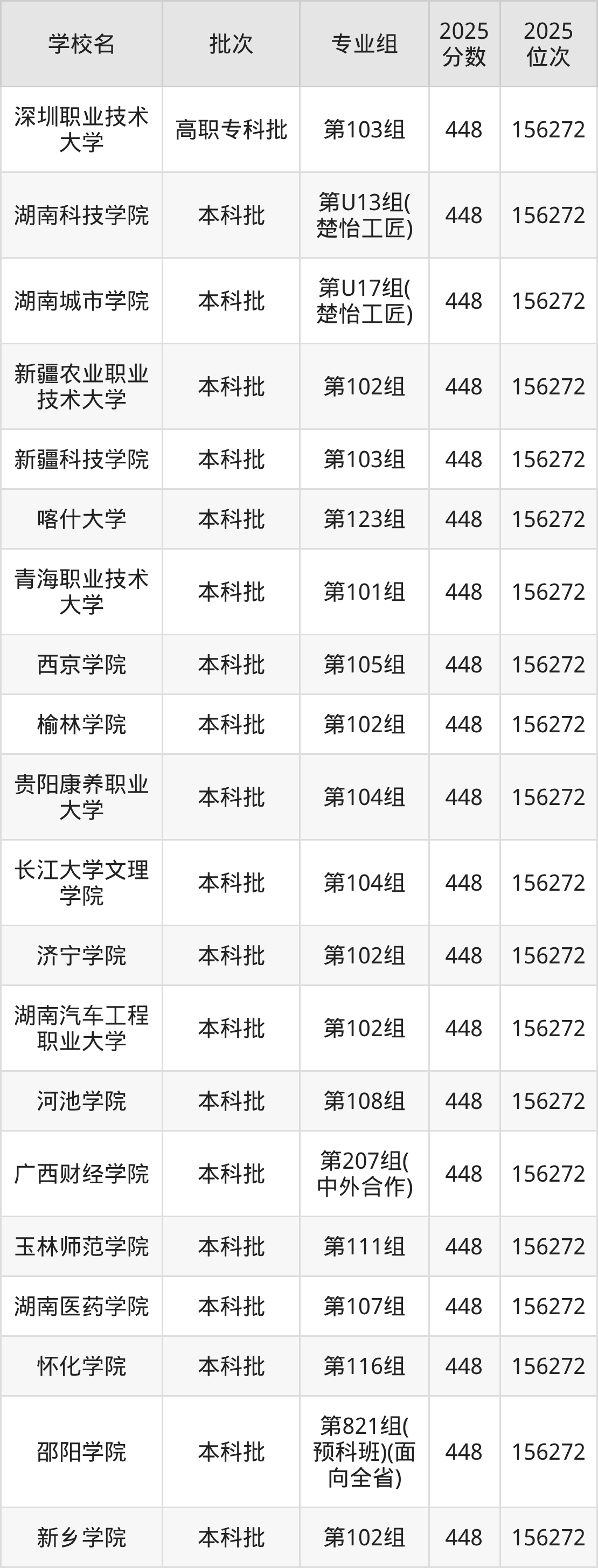 这些都是2026年高考物理类156273名~157600名考生可以报考的大学,更多学校名单如下表所示:
