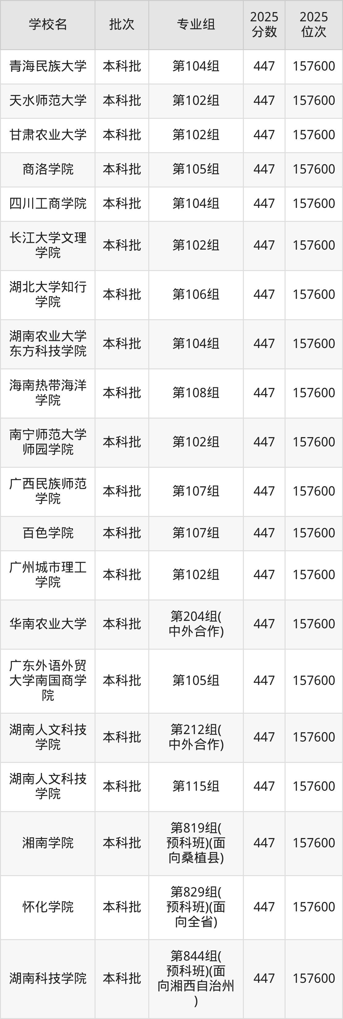 二、湖南447分位次排名能上的大学