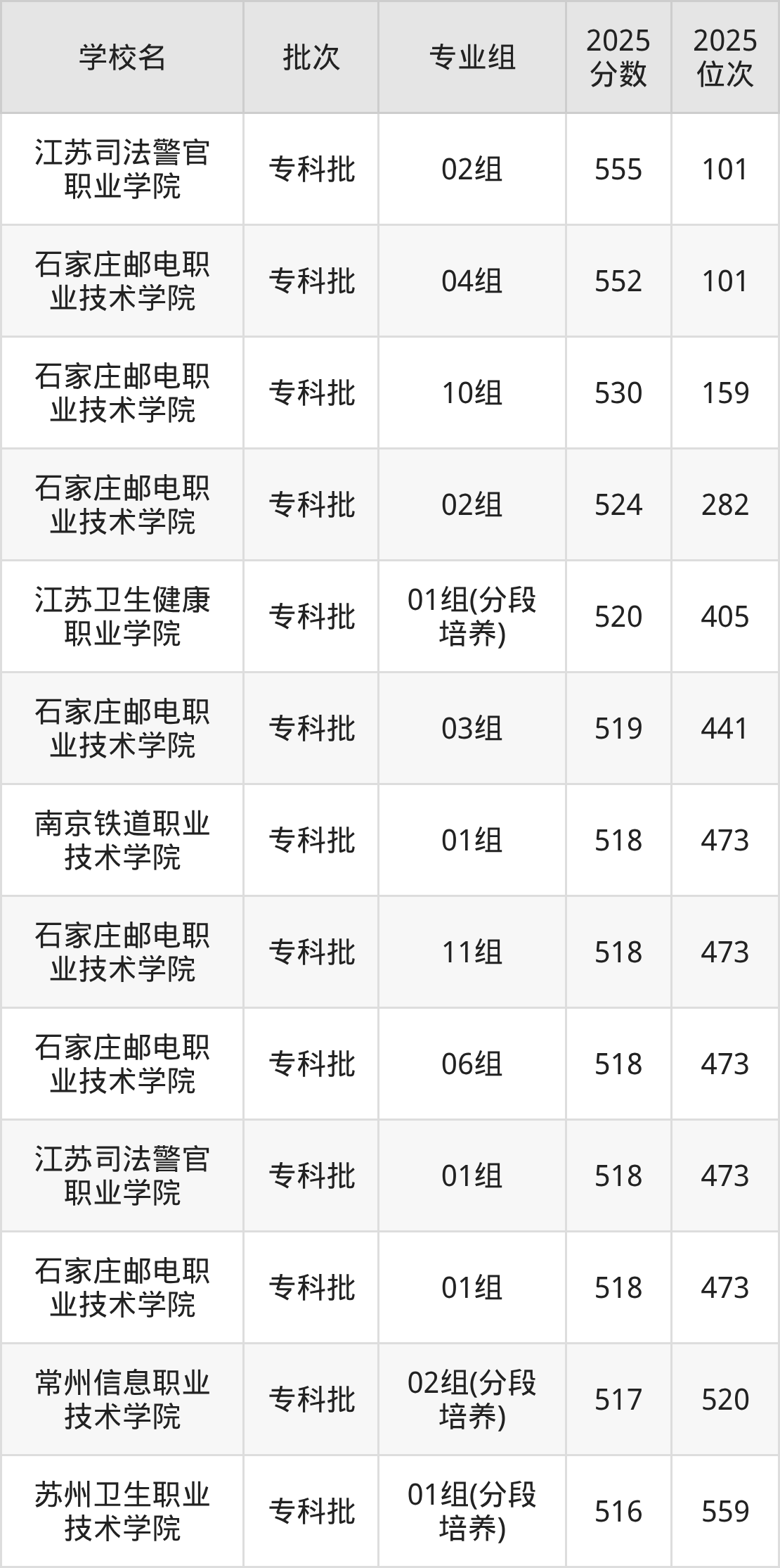另外录取位次低于该区间(较稳妥)的有江苏司法警官职业学院05组(373名)、江苏司法警官职业学院04组(1195名)等;录取位次高于该区间(可冲)的有无锡学院05组(108073名)、徐州医科大学04组(108073名)等。