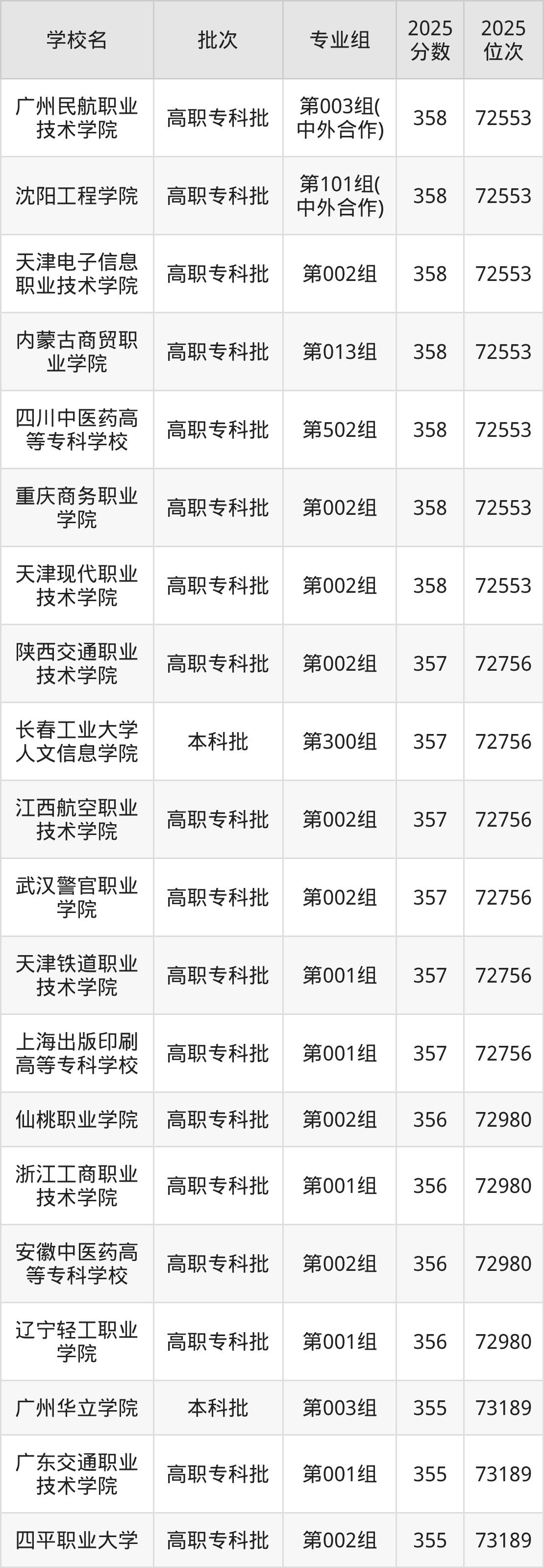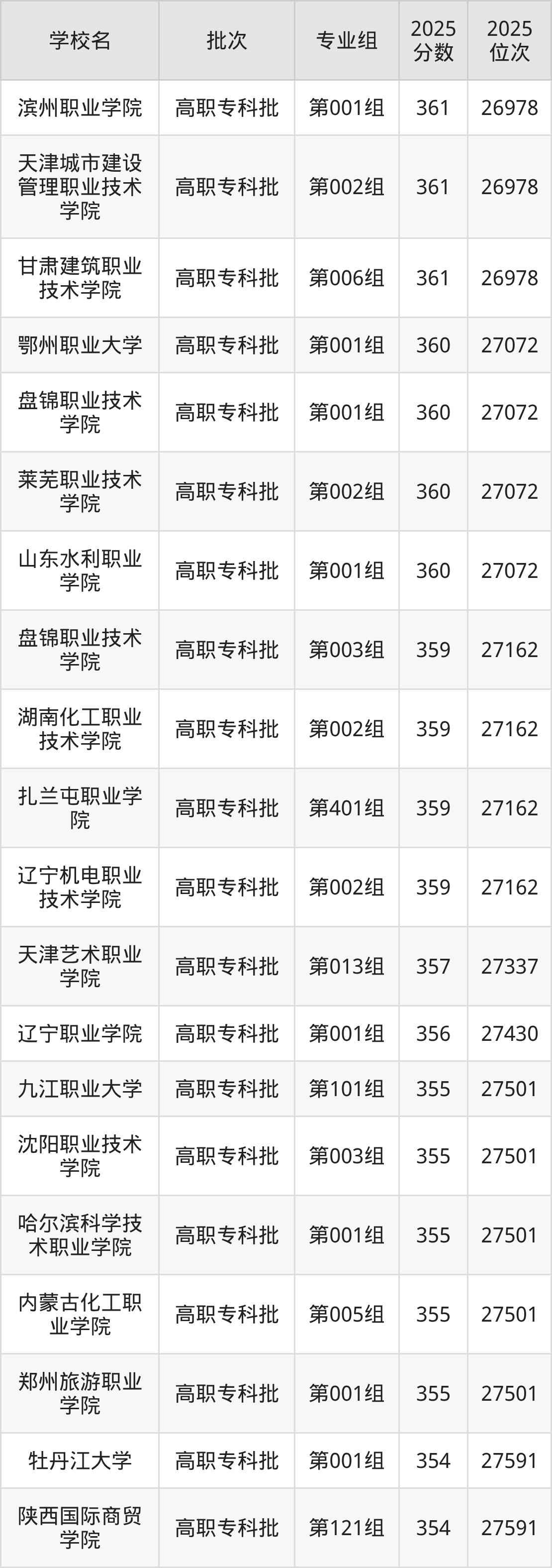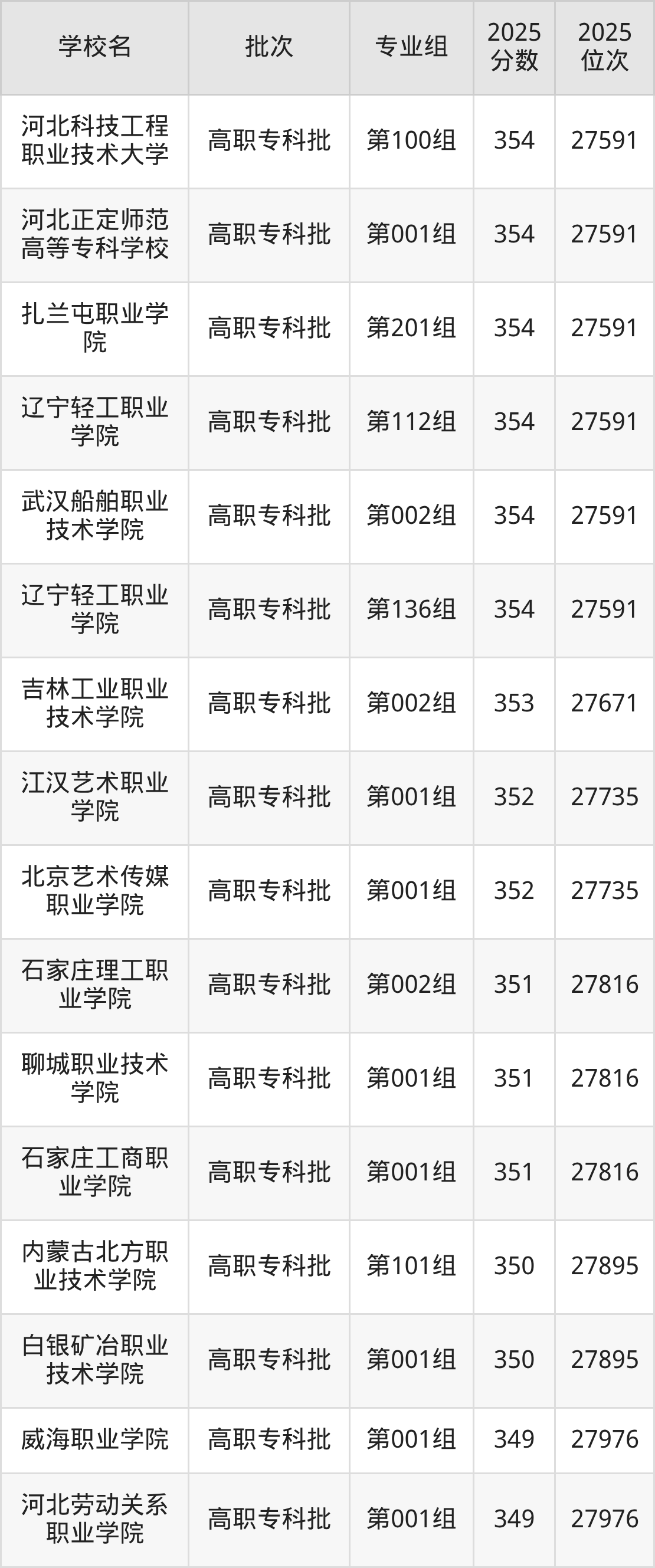 2025年内蒙古高考历史类355分(27431名~27501名)能上的大学有郑州旅游职业学院第001组、内蒙古化工职业学院第005组、哈尔滨科学技术职业学院第001组、沈阳职业技术学院第003组等。