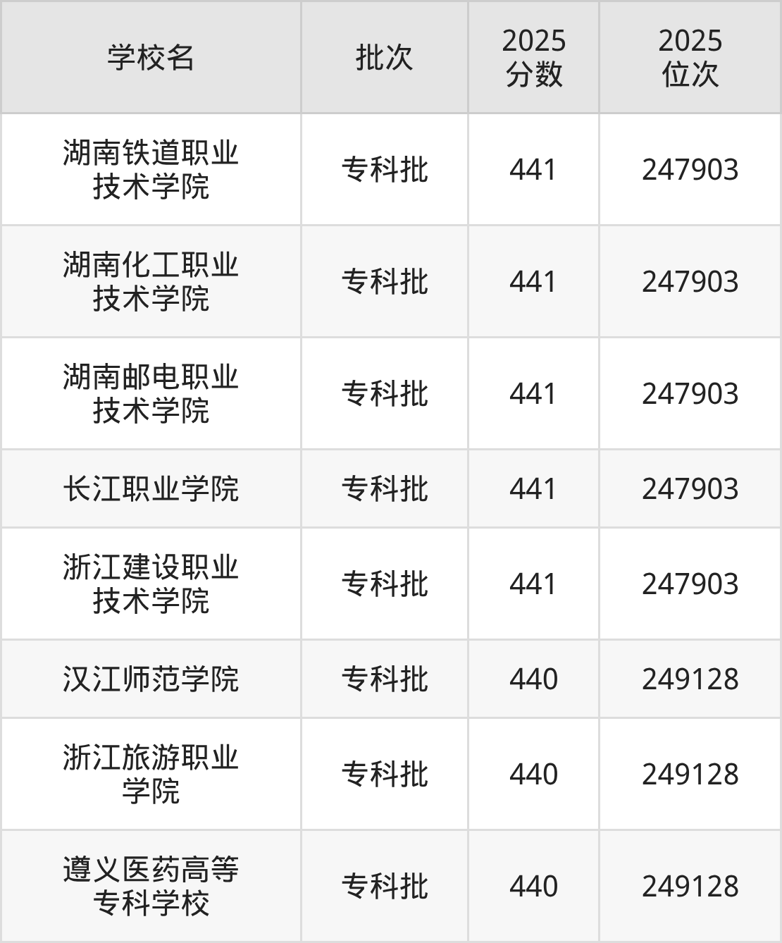 2025年河北高考物理类440分(247904名~249128名)能上的大学有遵义医药高等专科学校、浙江旅游职业学院、汉江师范学院。