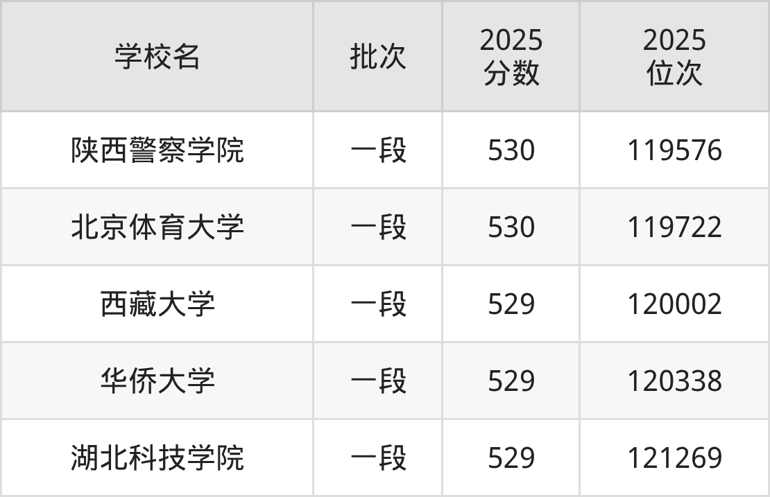 2025年山东高考529分(119782名~121771名)能上的大学有湖北科技学院、西藏大学、华侨大学。