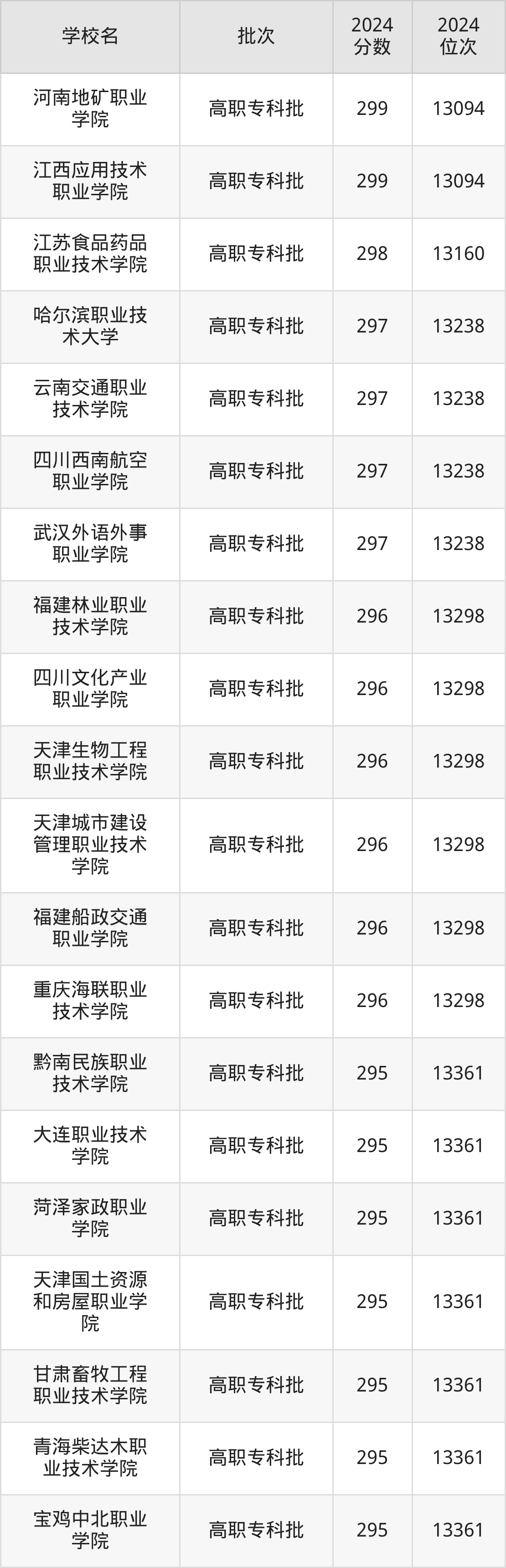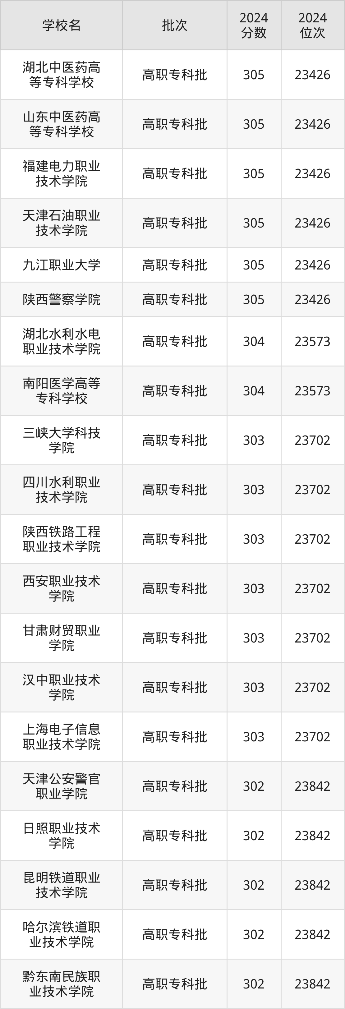 另外录取位次低于该区间(较稳妥)的有重庆三峡医药高等专科学校(24125名)、天津电子信息职业技术学院(24125名)等;录取位次高于该区间(可冲)的有哈尔滨铁道职业技术学院(23842名)、天津公安警官职业学院(23842名)等。
