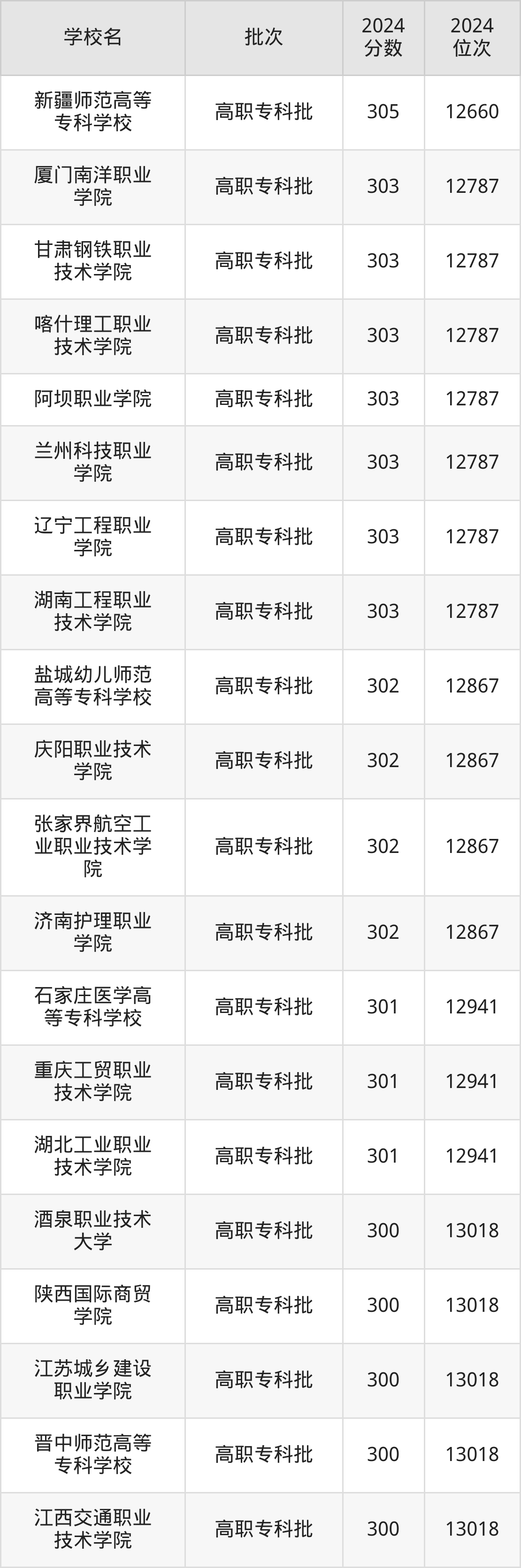 2024年青海高考文科301分(12868名~12941名)能上的大学有重庆工贸职业技术学院、石家庄医学高等专科学校、湖北工业职业技术学院。