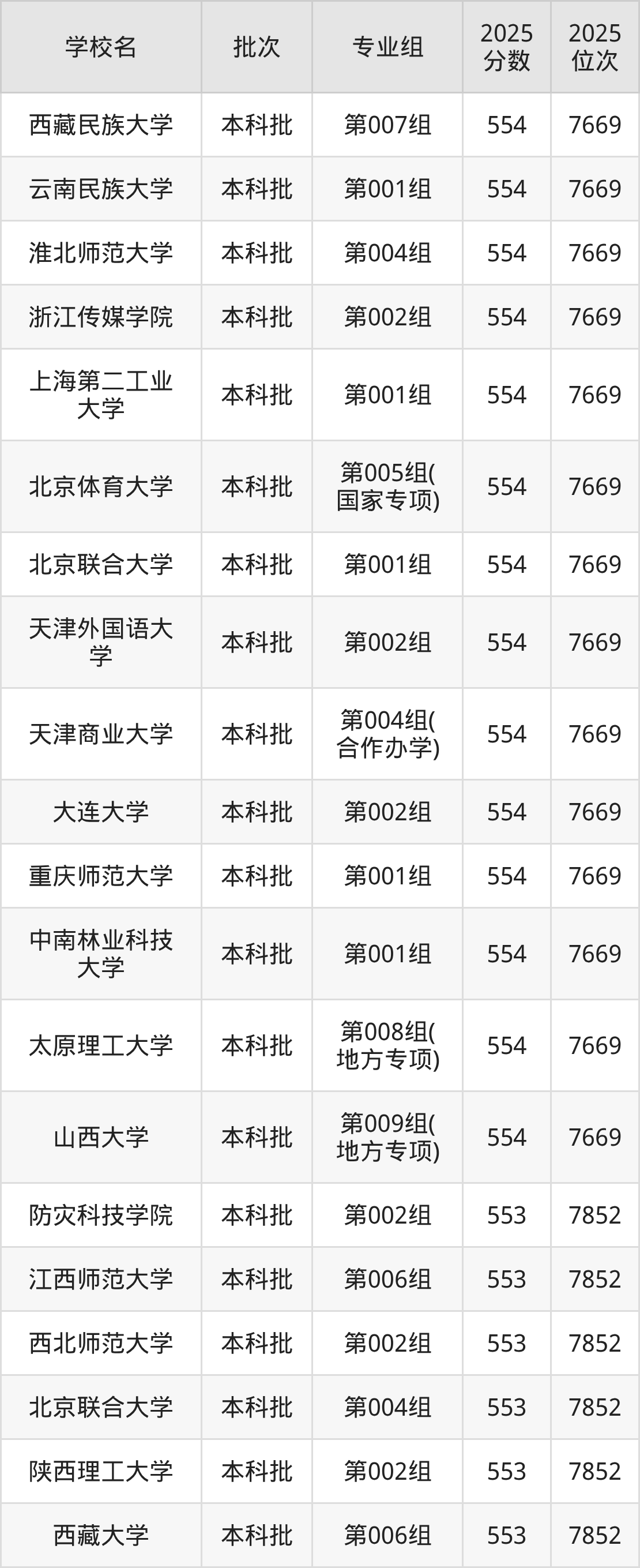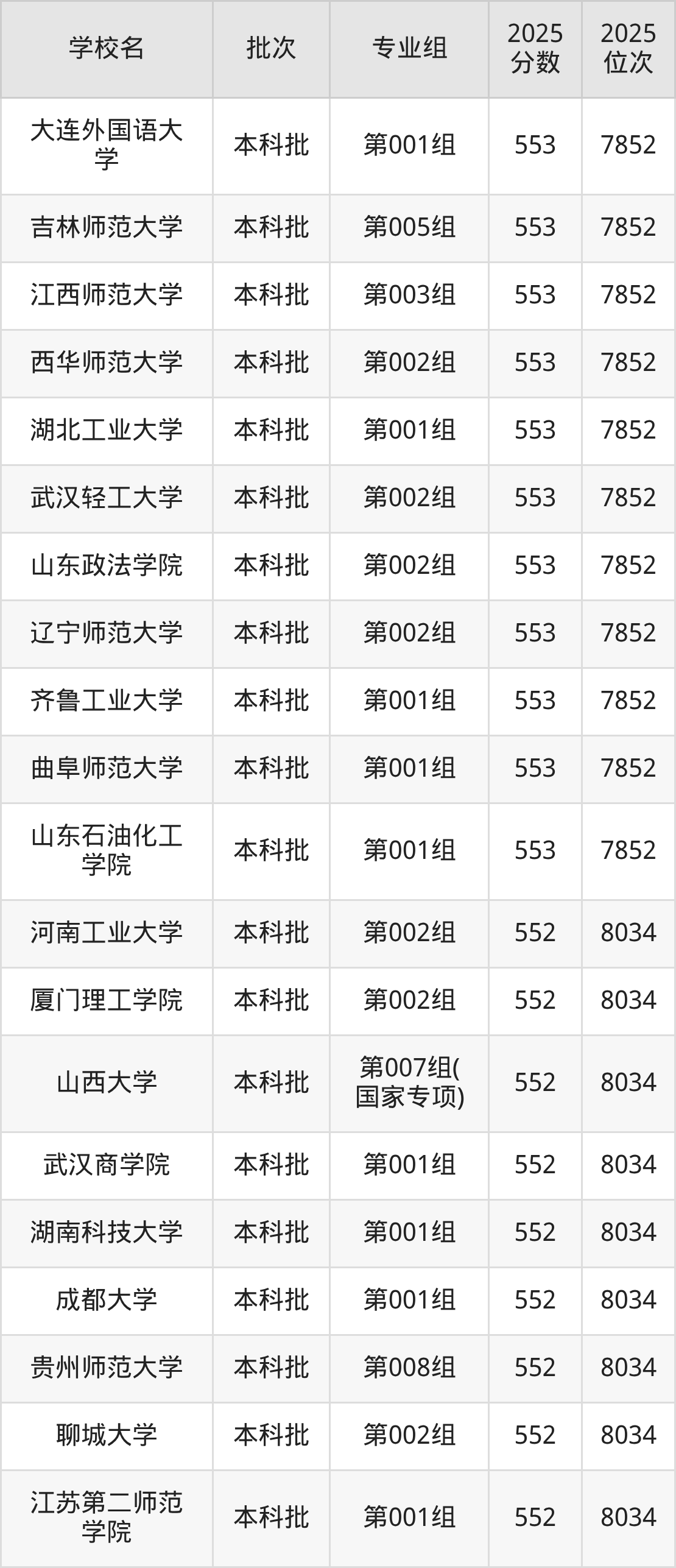 这些都是2026年高考历史类8035名~8229名考生可以报考的大学,更多学校名单如下表所示: