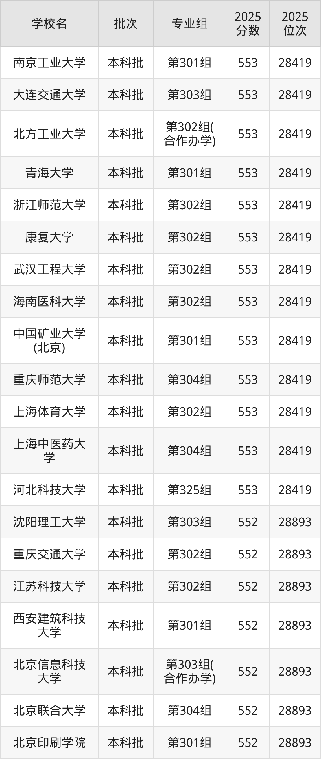 这些都是2026年高考物理类28894名~29383名考生可以报考的大学,更多学校名单如下表所示: