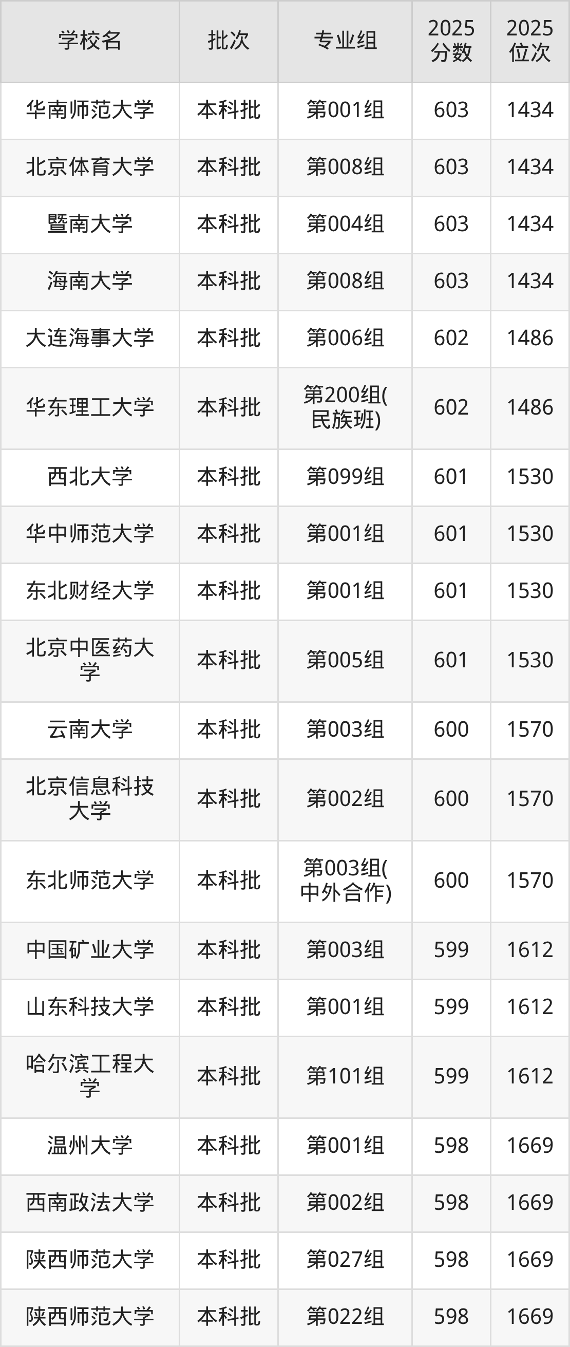 2025年内蒙古高考历史类598分(1613名~1669名)能上的大学有陕西师范大学第027组、西南政法大学第002组、温州大学第001组、陕西师范大学第022组等。