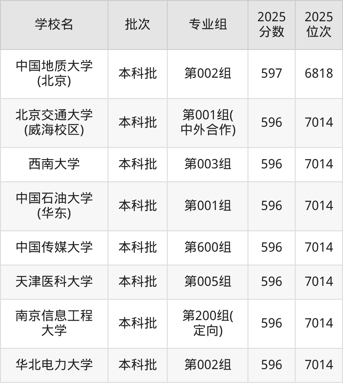 另外录取位次低于该区间(较稳妥)的有西南大学第005组(6818名)、内蒙古大学第211组(6818名)等;录取位次高于该区间(可冲)的有北京林业大学第007组(6532名)、东北财经大学第100组(6532名)等。