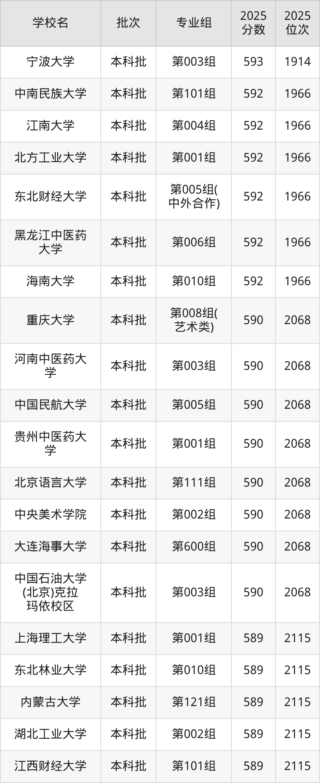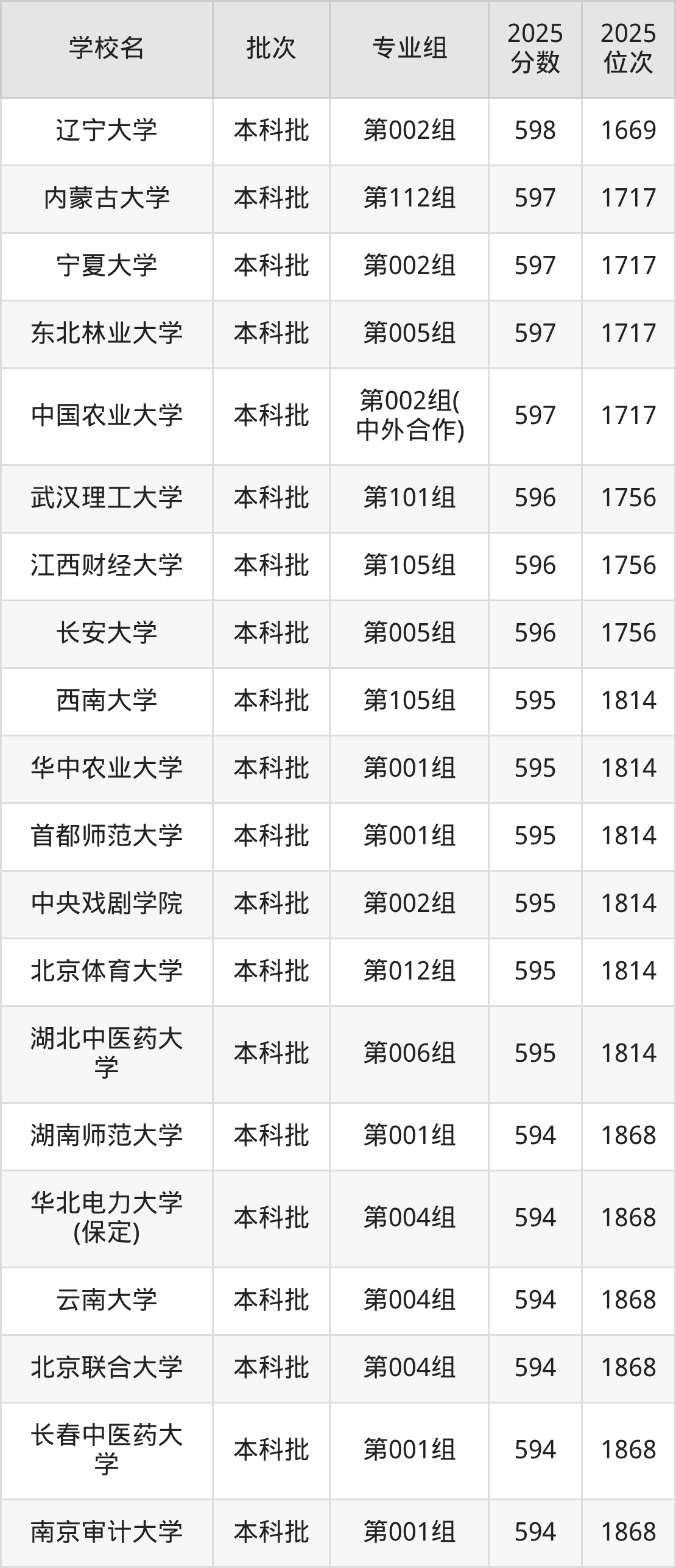 二、内蒙古598分位次排名能上的大学