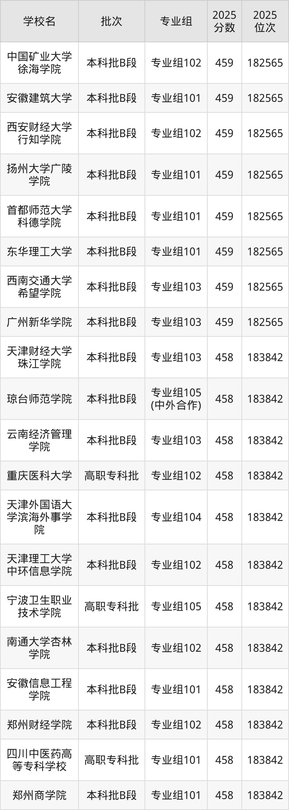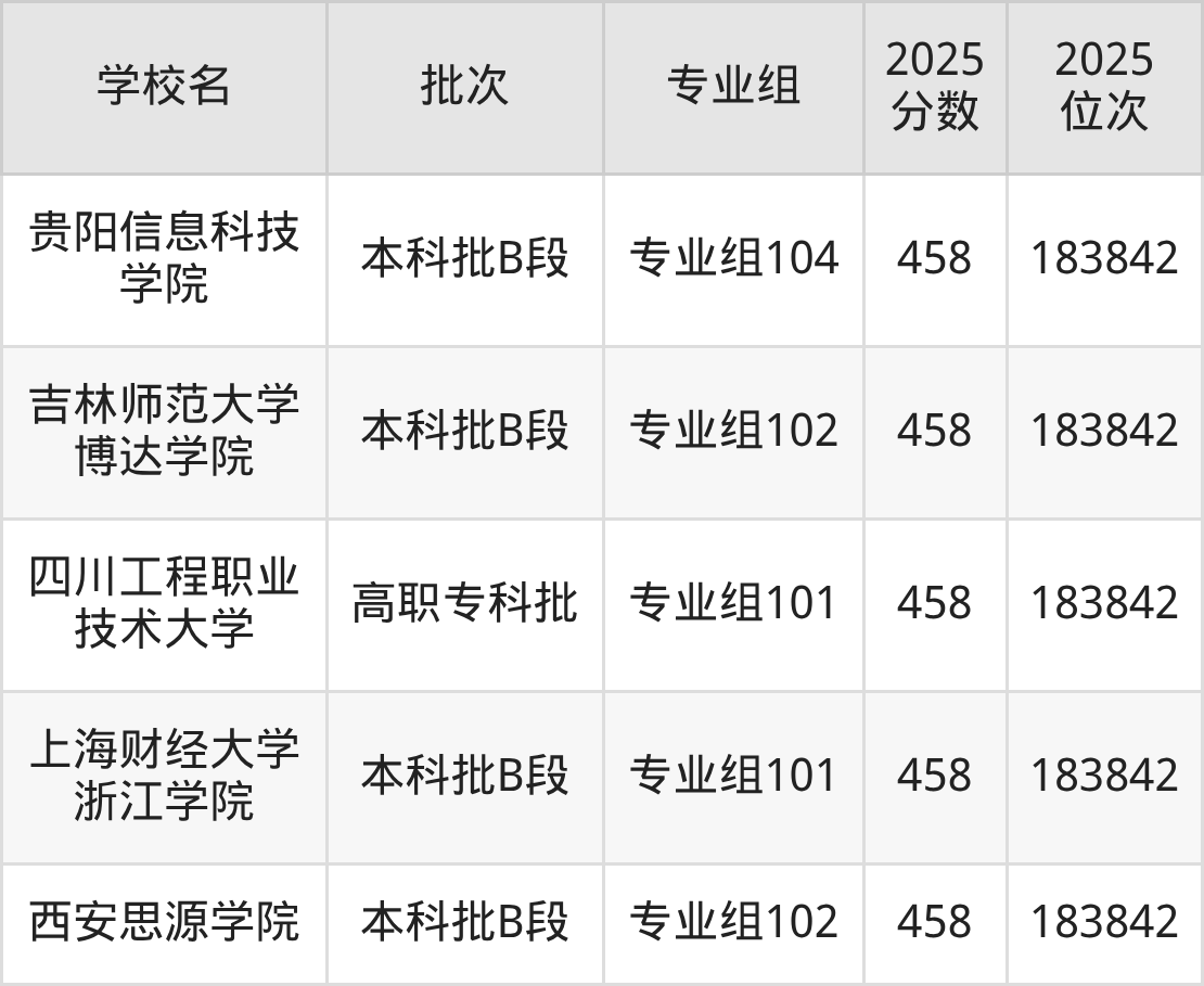 2025年四川高考物理类458分(182566名~183842名)能上的大学有西安思源学院专业组102、上海财经大学浙江学院专业组101、四川工程职业技术大学专业组101、吉林师范大学博达学院专业组102等。