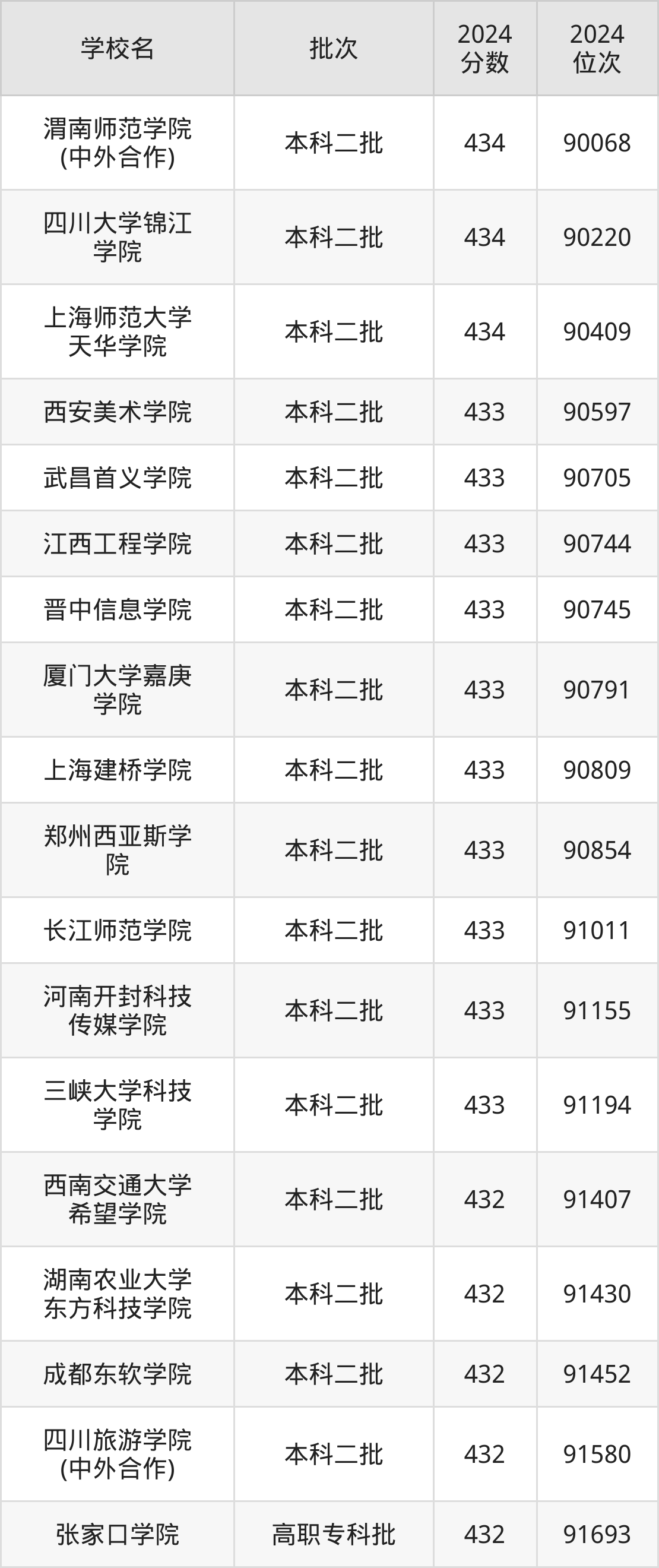 另外录取位次低于该区间(较稳妥)的有西南交通大学希望学院(91407名)、湖南农业大学东方科技学院(91430名)等;录取位次高于该区间(可冲)的有上海师范大学天华学院(90409名)、四川大学锦江学院(90220名)等。