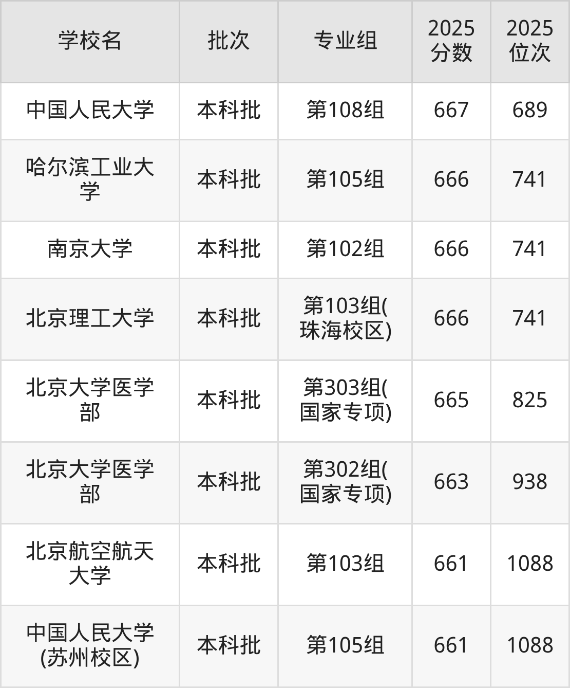另外录取位次低于该区间(较稳妥)的有中国人民大学第108组(689名)、南京大学第102组(741名)等;录取位次高于该区间(可冲)的有中国人民大学第107组(587名)、复旦大学第102组(587名)等。