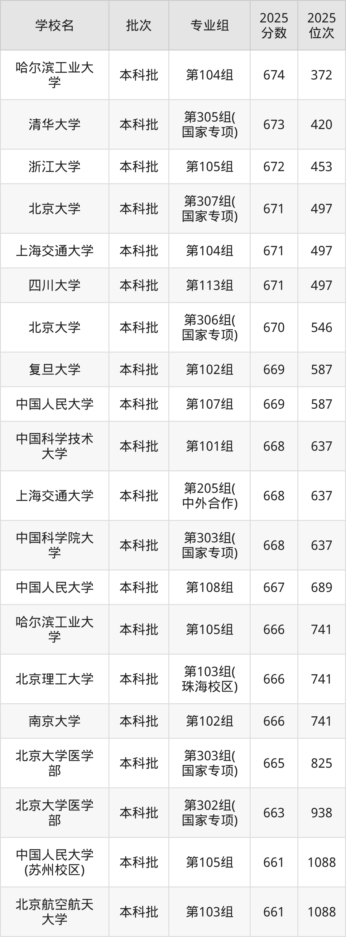 2025年湖南高考物理类664分(826名~887名)录取位次低于该区间(较稳妥)的有北京大学医学部第302组(国家专项)(938名)、中国人民大学(苏州校区)第105组(1088名)等;录取位次高于该区间(可冲)的有北京大学医学部第303组(国家专项)(825名)、北京理工大学第103组(珠海校区)(741名)等。