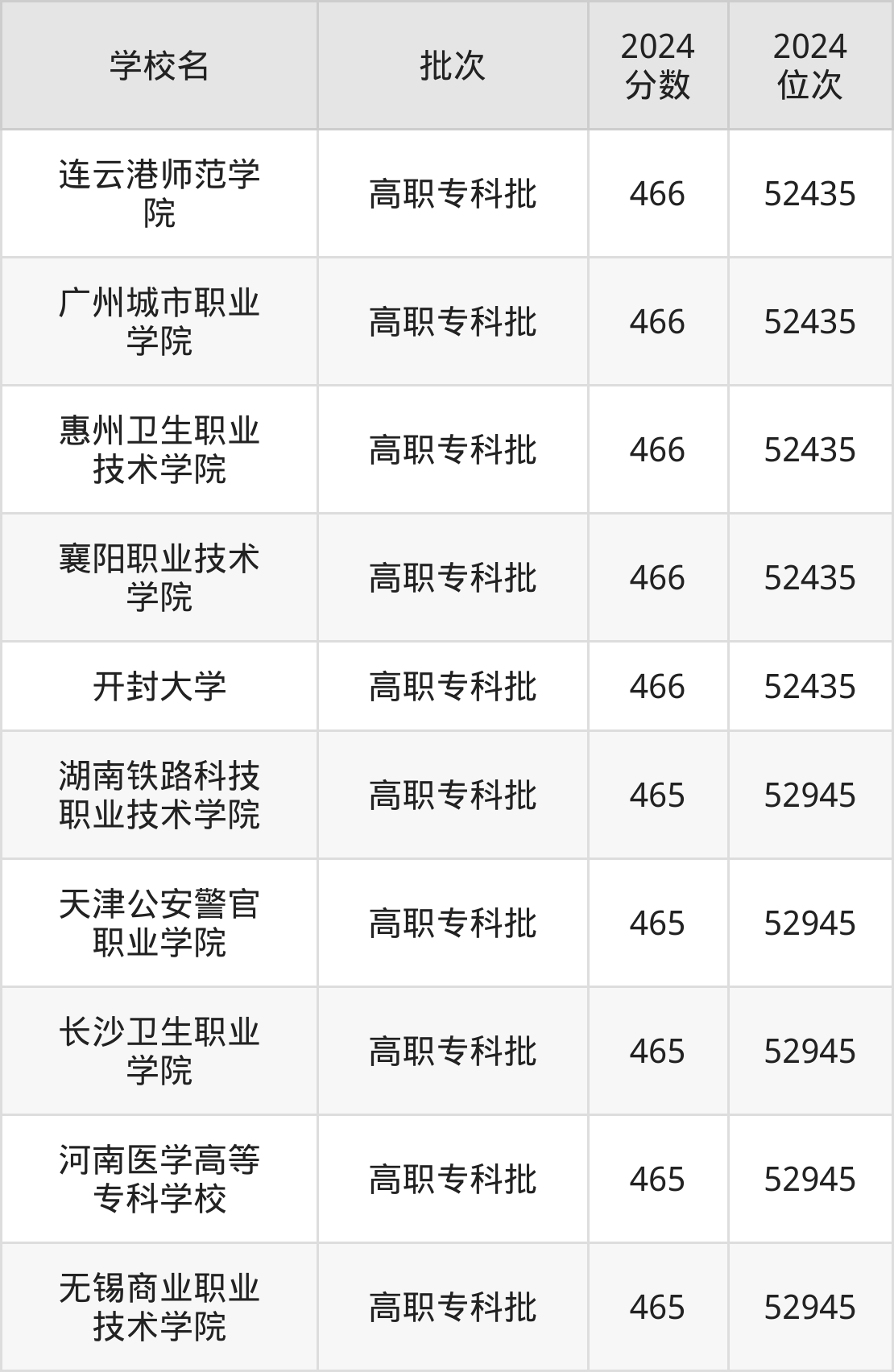2024年云南高考文科465分(52436名~52945名)能上的大学有天津公安警官职业学院、无锡商业职业技术学院、河南医学高等专科学校、湖南铁路科技职业技术学院等。