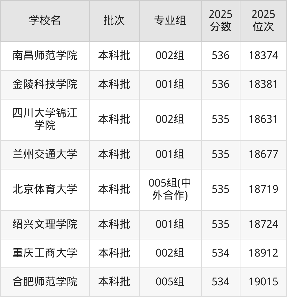 这些都是2026年高考历史类18213名~18524名考生可以报考的大学,更多学校名单如下表所示: