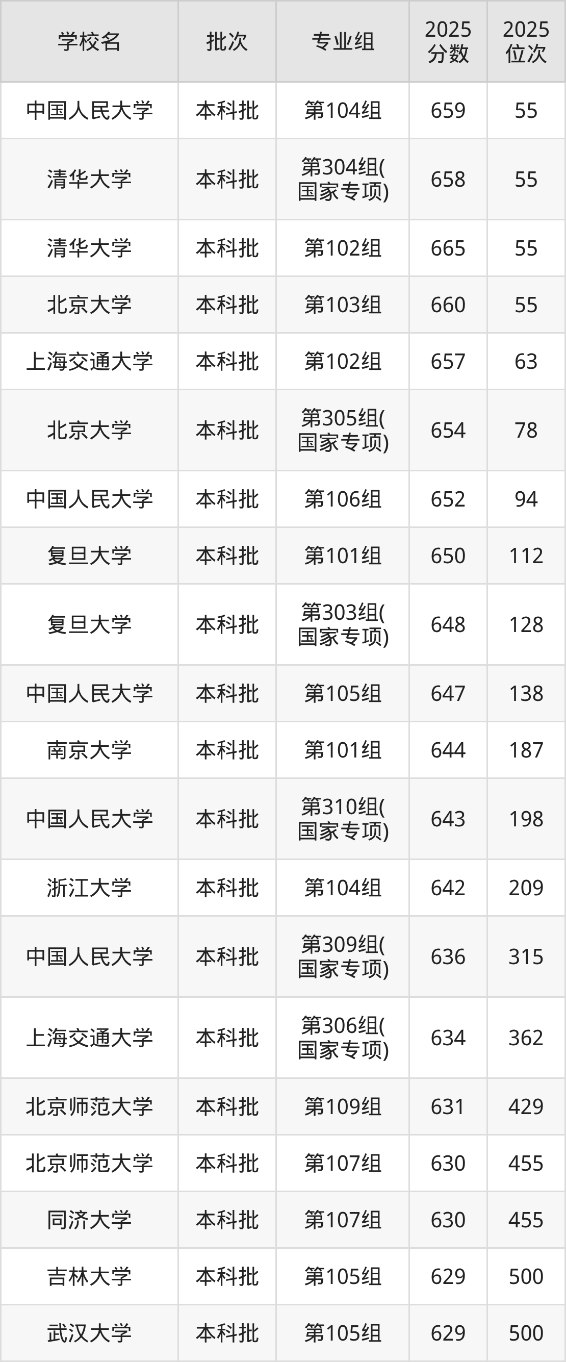2025年湖南高考历史类654分(74名~78名)能上的大学有北京大学第305组(国家专项)。