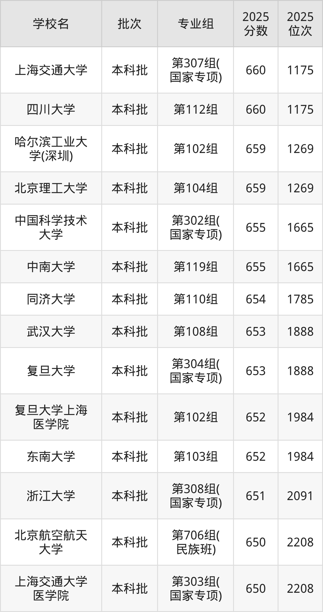 湖南高考654分:历史类排名78位、物理类排名1785位。该分数位次对应能上的大学历史类有北京大学第305组(国家专项);物理类有同济大学第110组,更多名单如下文所示,2026届考生可参考。