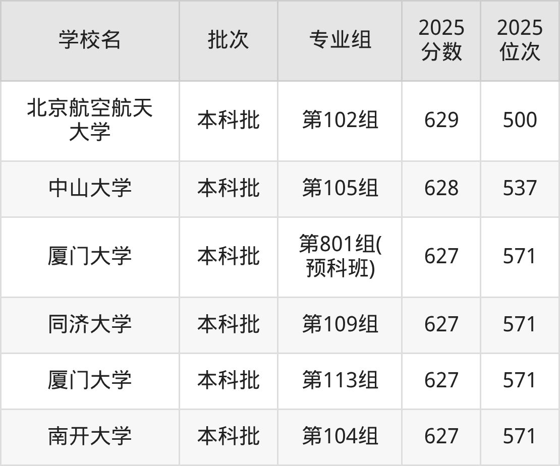 由于高考录取分数线历年波动较大,因此本文以该分数对应的位次排名为大家整理能上的大学名单。
