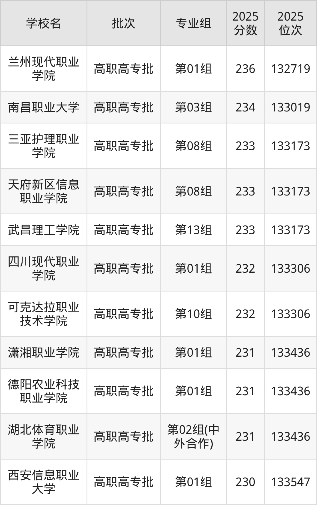 2025年湖北高考历史类232分(133174名~133306名)能上的大学有四川现代职业学院第01组、可克达拉职业技术学院第10组。