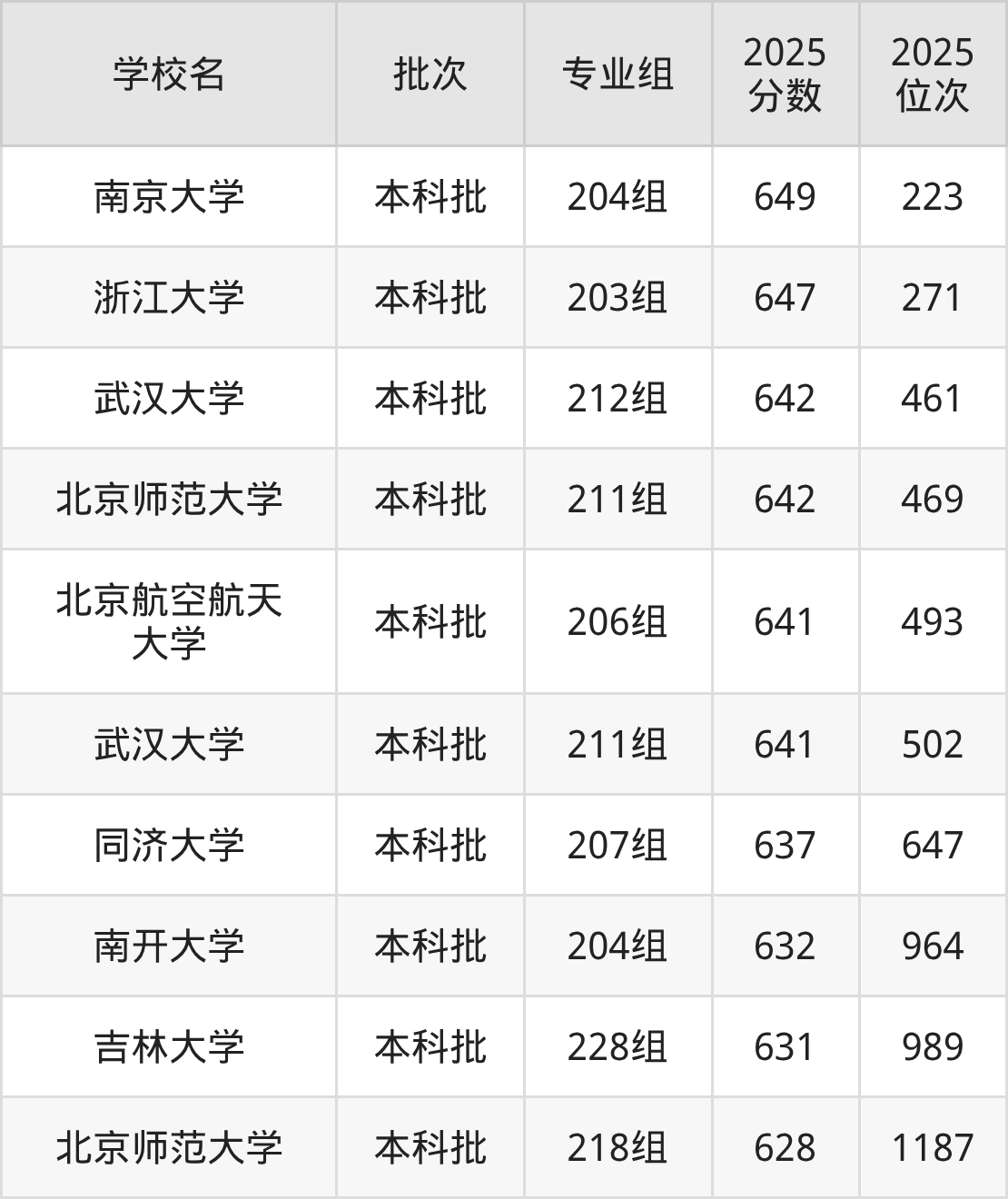 2025年广东高考历史类636分(697名~735名)录取位次低于该区间(较稳妥)的有南开大学204组(964名)、吉林大学228组(989名)等;录取位次高于该区间(可冲)的有同济大学207组(647名)、武汉大学211组(502名)等。