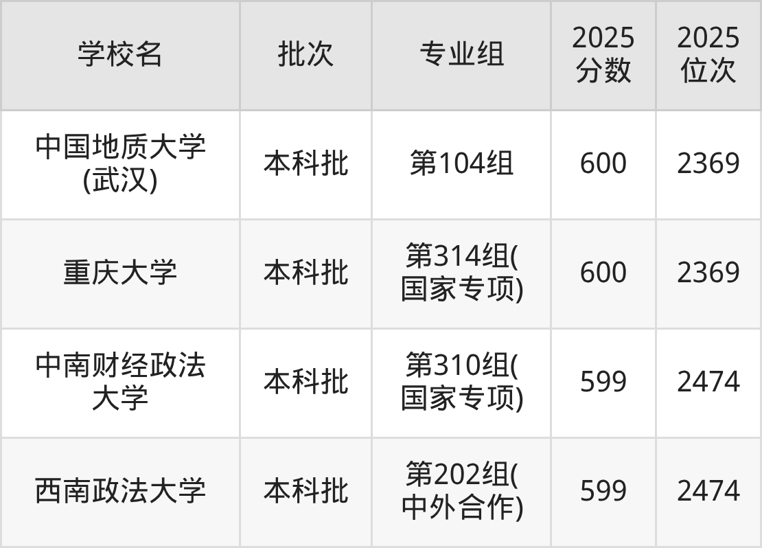 另外录取位次低于该区间(较稳妥)的有上海外国语大学第305组(国家专项)(2080名)、中南大学第801组(预科班)(2080名)等;录取位次高于该区间(可冲)的有湖南大学第801组(预科班)(1906名)、北京邮电大学第102组(1906名)等。