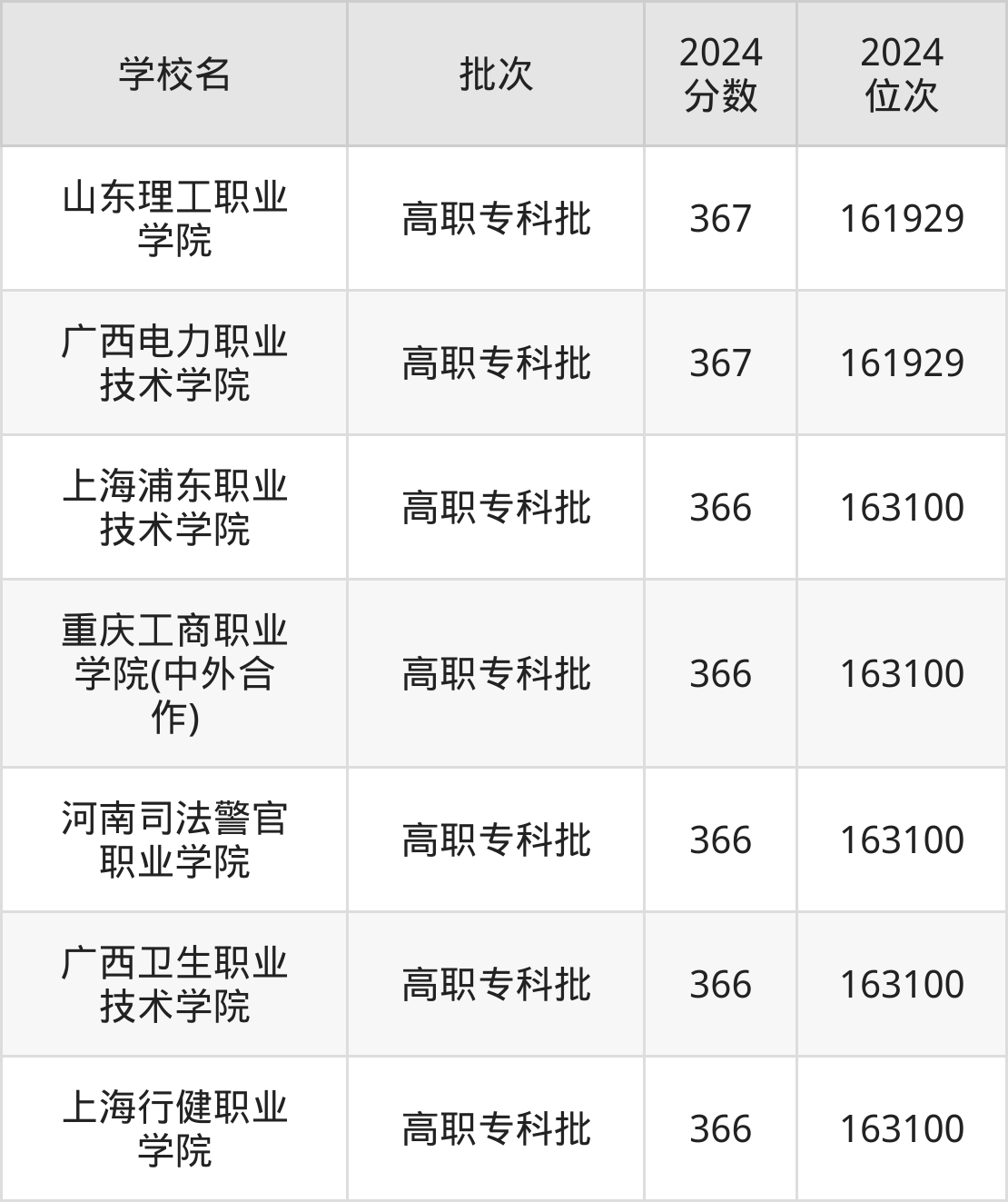 2024年河南高考文科366分(161930名~163100名)能上的大学有上海行健职业学院、广西卫生职业技术学院、河南司法警官职业学院、重庆工商职业学院(中外合作)等。