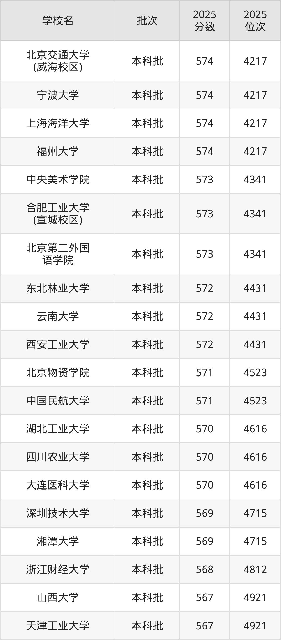 这些都是2026年高考历史类4716名~4812名考生可以报考的大学,更多学校名单如下表所示: