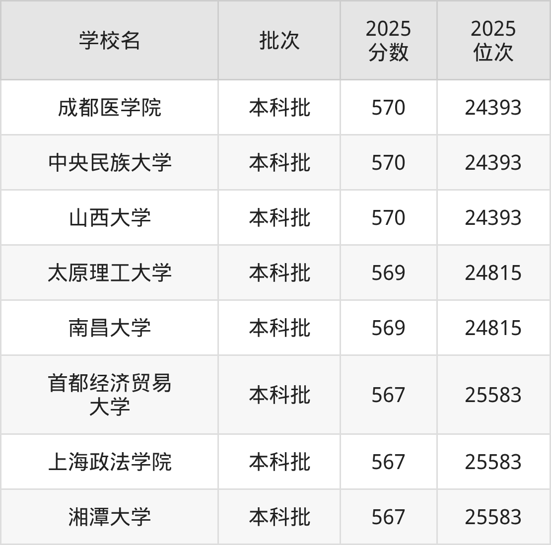 这些都是2026年高考物理类24816名~25204名考生可以报考的大学,更多学校名单如下表所示: