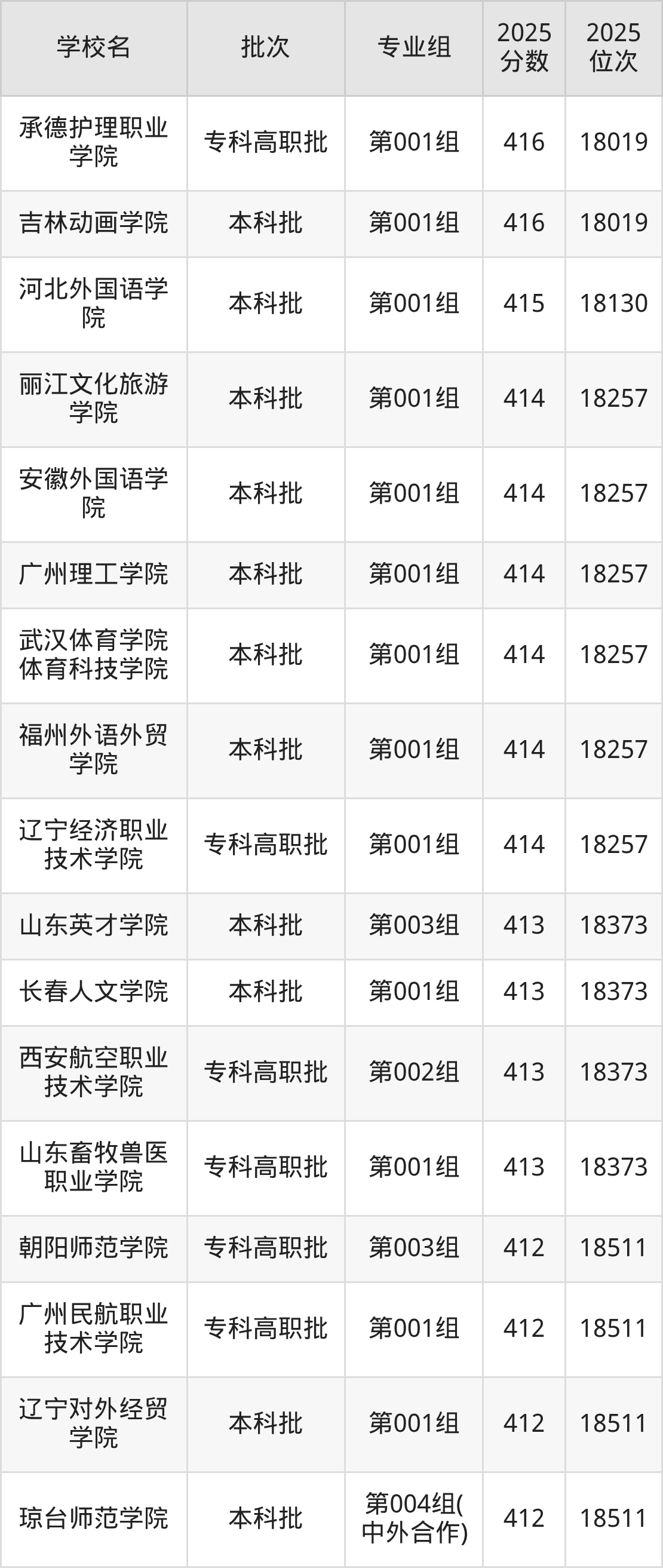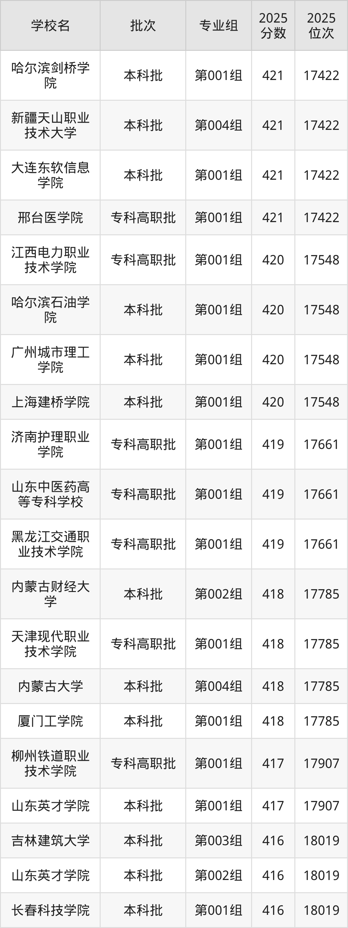 2025年吉林高考历史类416分(17908名~18019名)能上的大学有吉林建筑大学第003组、吉林动画学院第001组、长春科技学院第001组、山东英才学院第002组等。