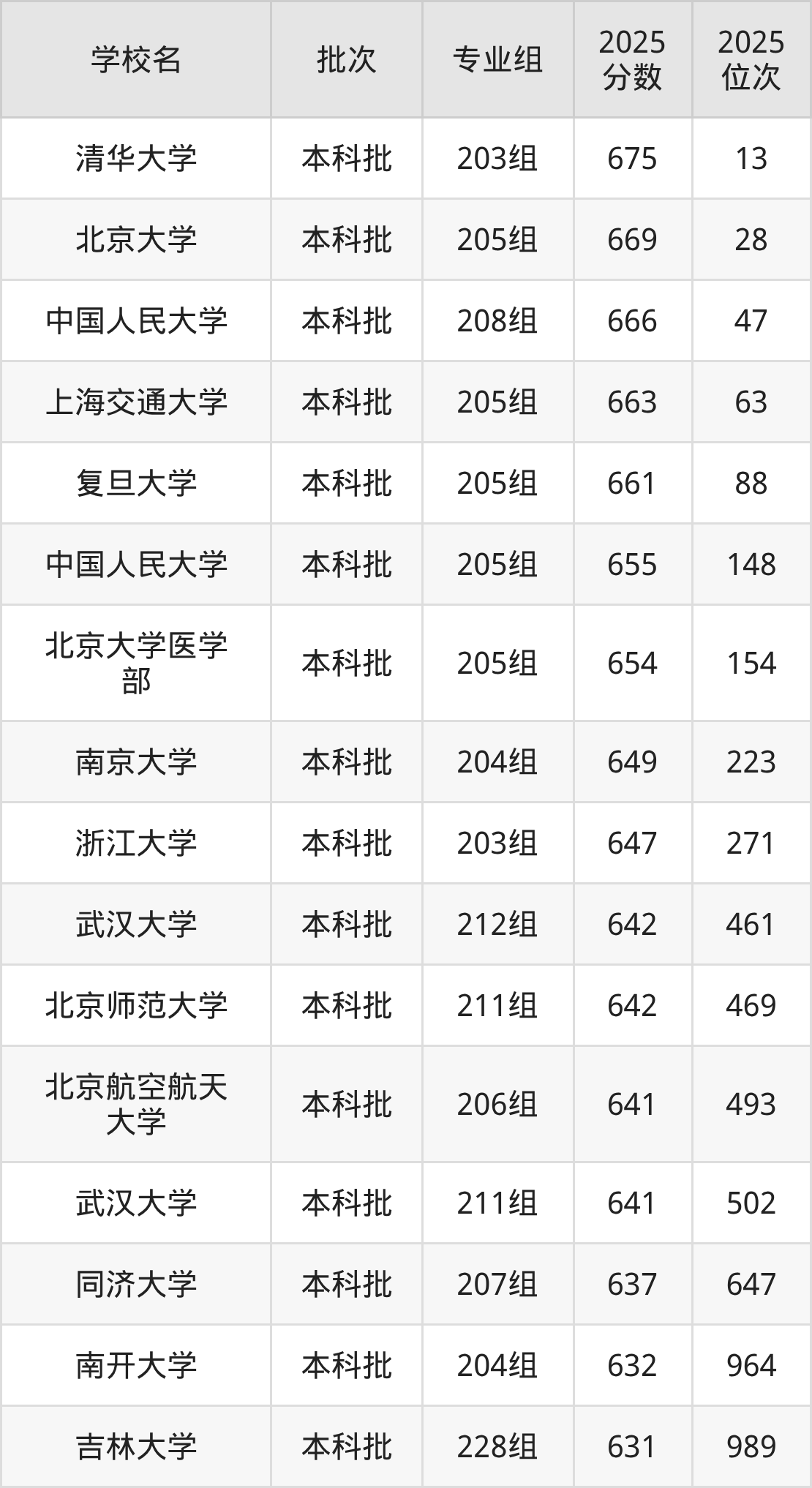 另外录取位次低于该区间(较稳妥)的有同济大学207组(647名)、南开大学204组(964名)等;录取位次高于该区间(可冲)的有北京师范大学211组(469名)、武汉大学212组(461名)等。