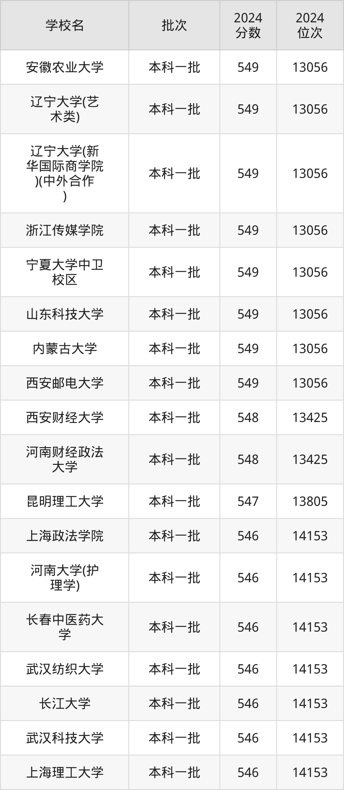 2024年河南高考文科547分(13426名~13805名)能上的大学有昆明理工大学。