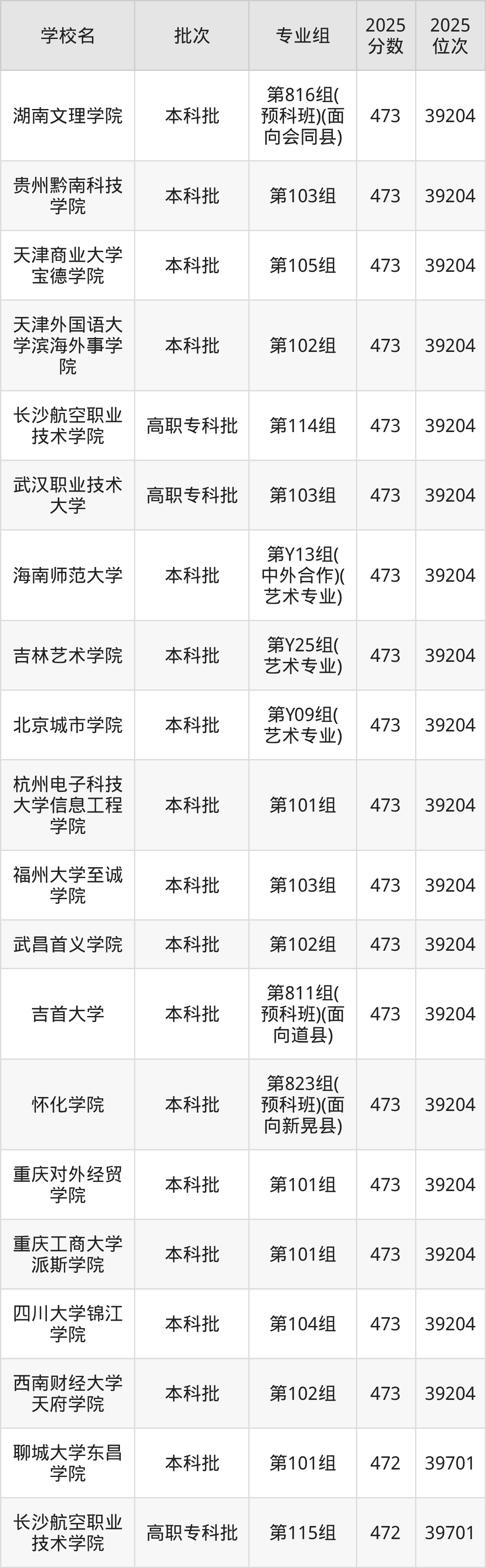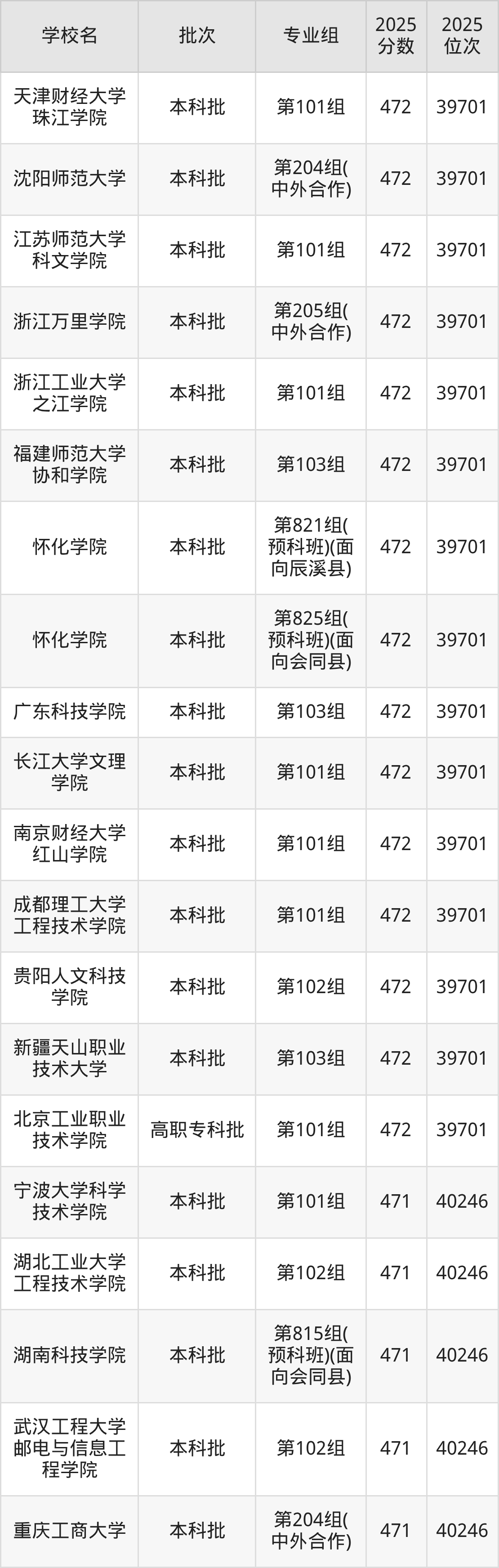 这些都是2026年高考历史类39702名~40246名考生可以报考的大学,更多学校名单如下表所示:
