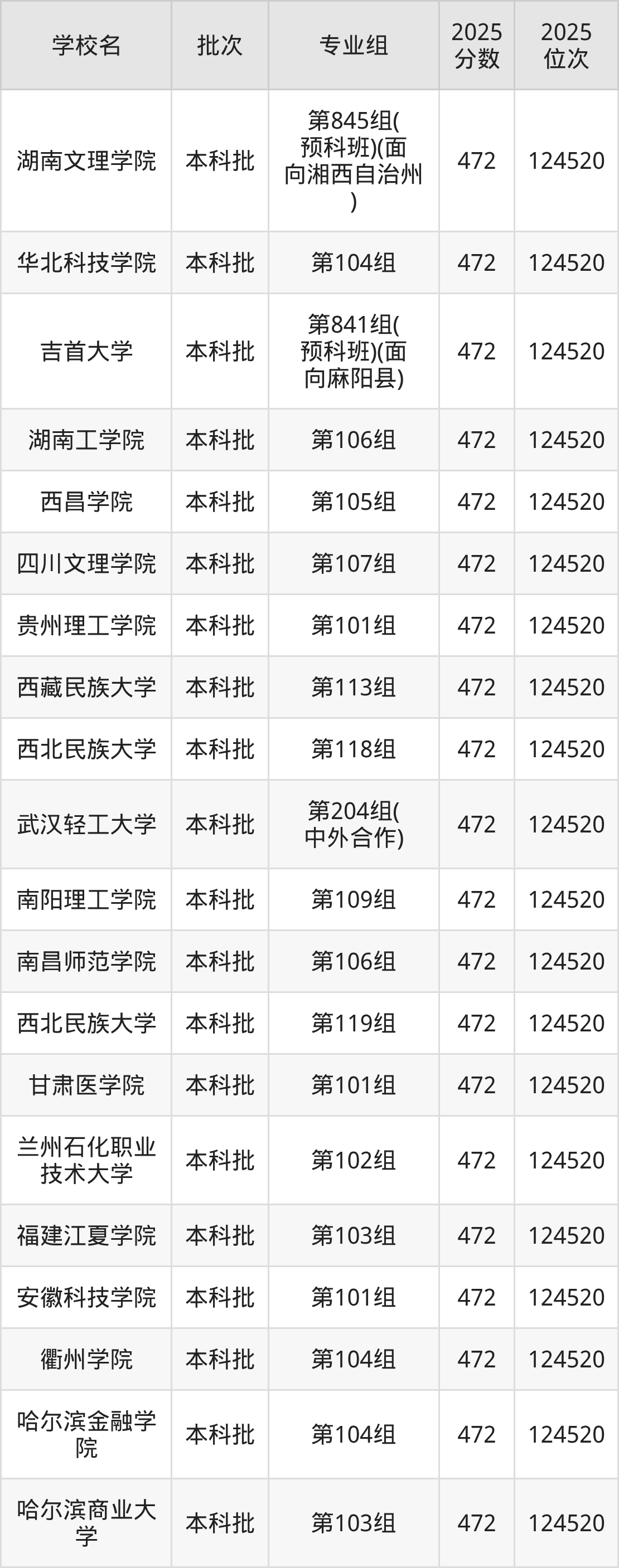 这些都是2026年高考物理类124521名~125833名考生可以报考的大学,更多学校名单如下表所示: