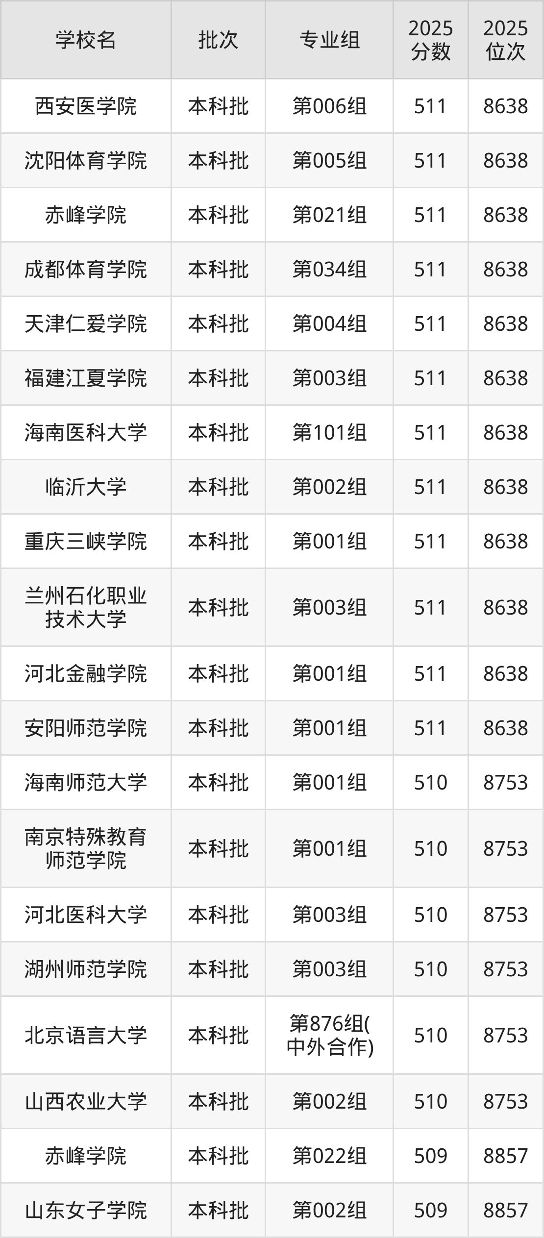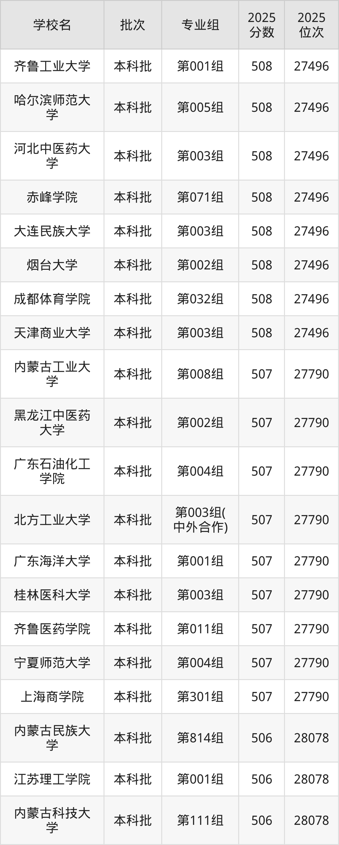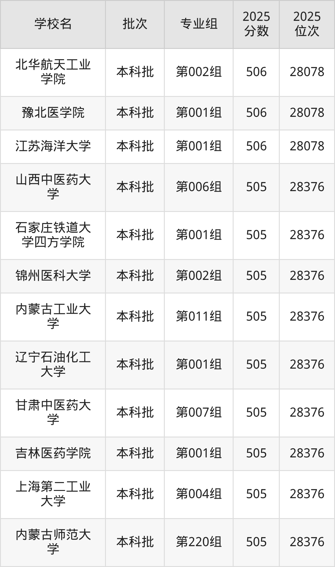 这些都是2026年高考物理类27791名~28078名考生可以报考的大学,更多学校名单如下表所示: