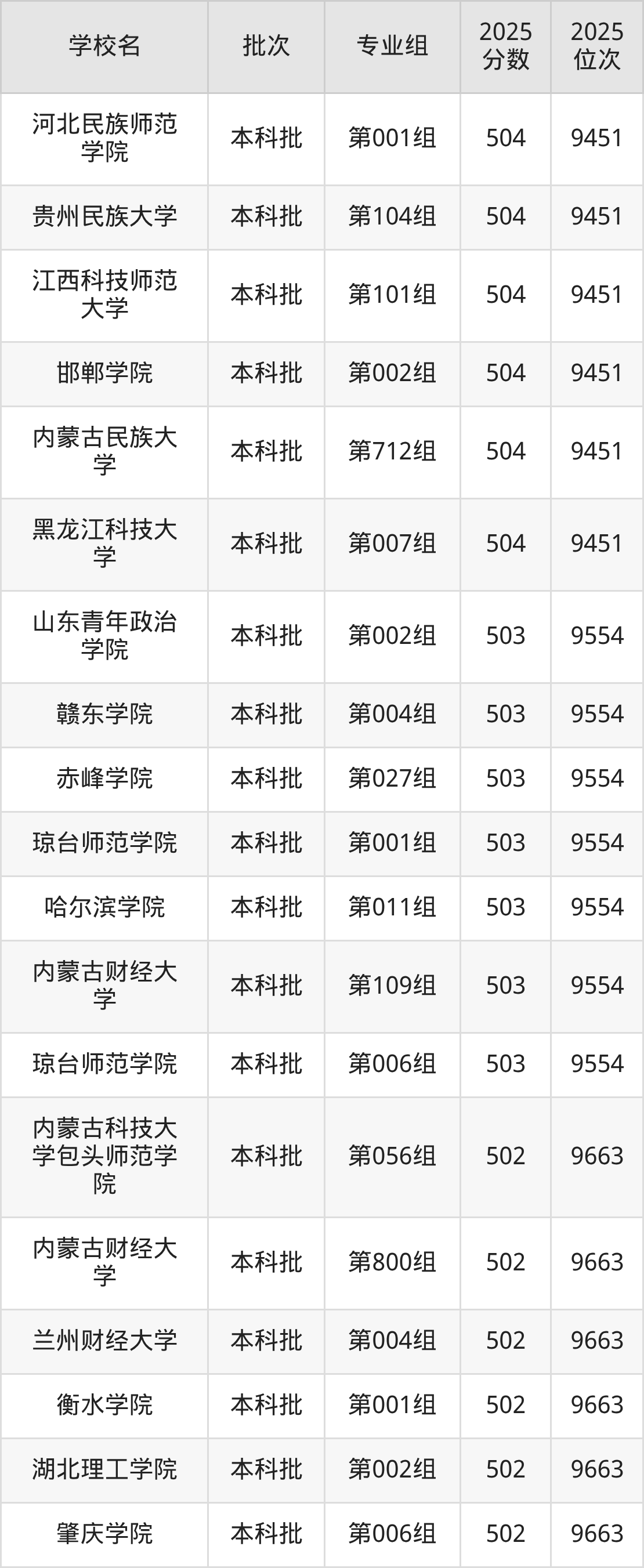 这些都是2026年高考历史类9097名~9216名考生可以报考的大学,更多学校名单如下表所示: