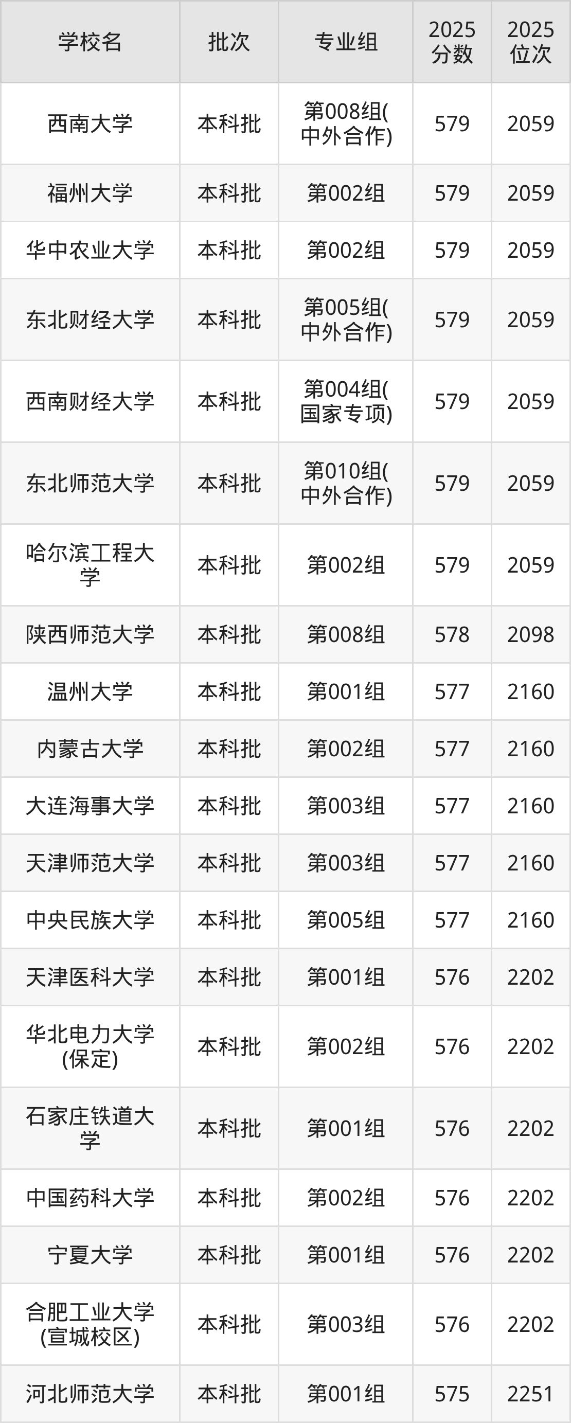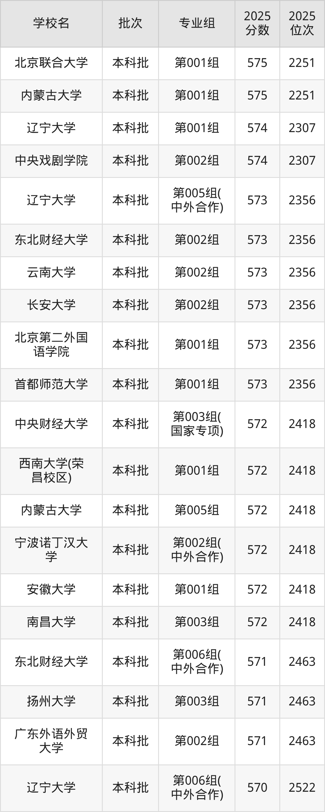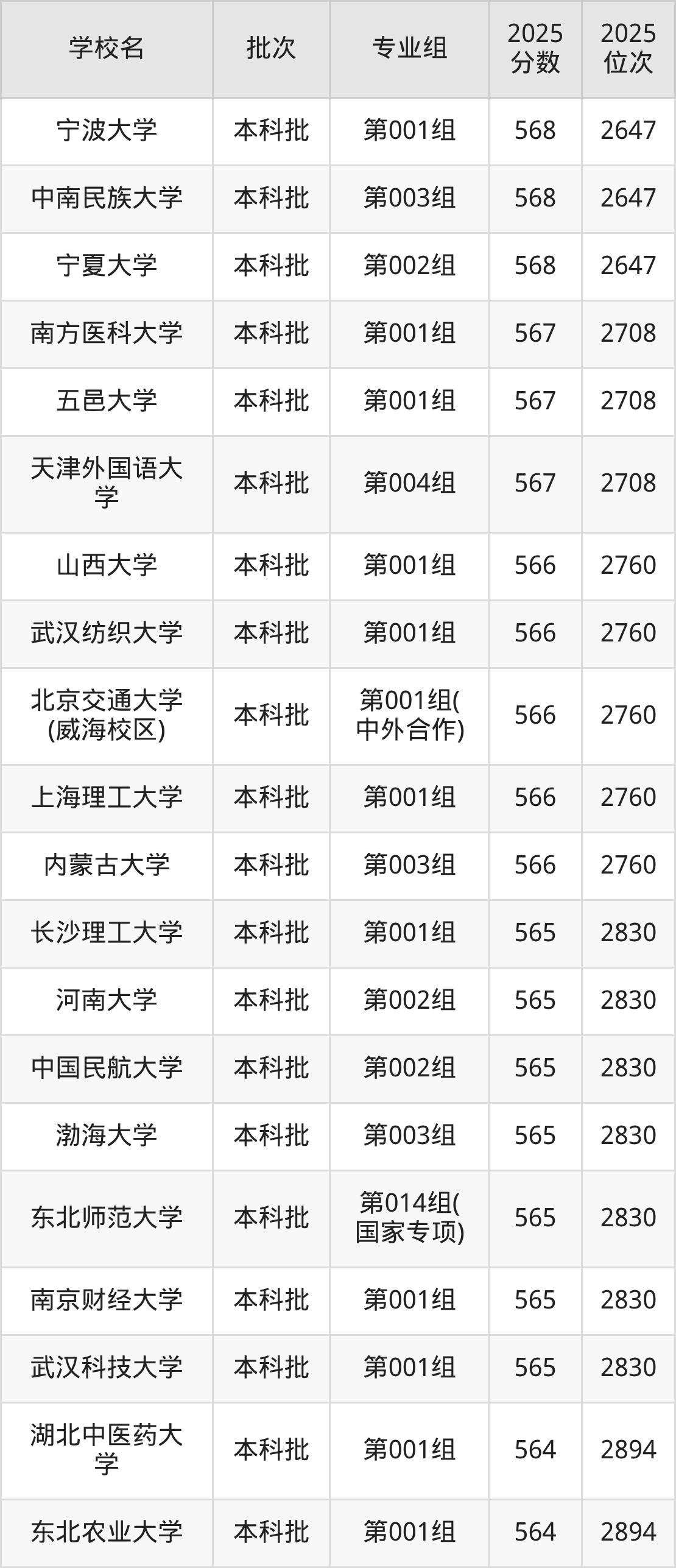 这些都是2026年高考历史类2523名~2589名考生可以报考的大学,更多学校名单如下表所示: