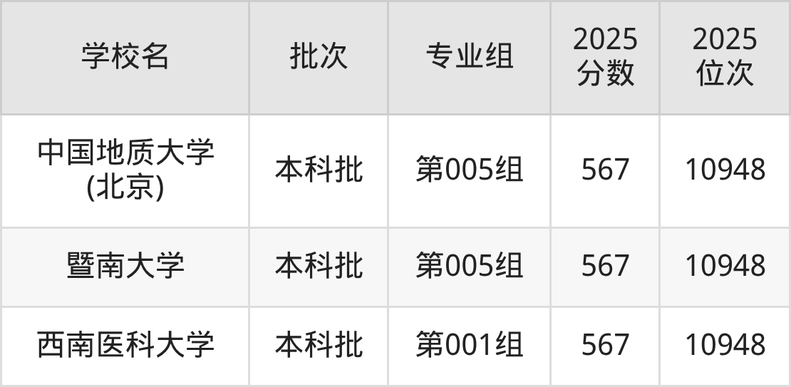这些都是2026年高考物理类10383名~10573名考生可以报考的大学,更多学校名单如下表所示: