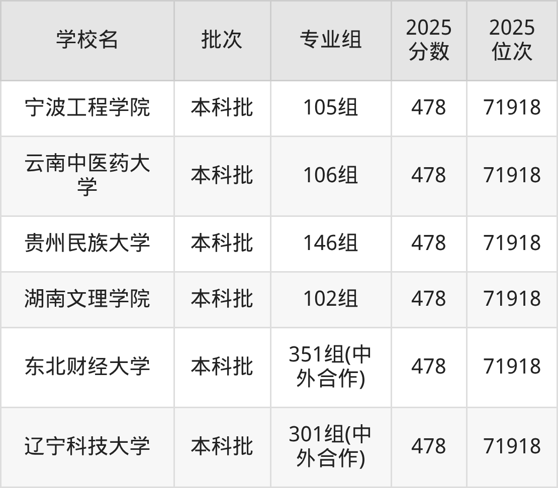 2025年广西高考物理类478分(71102名~71918名)能上的大学有辽宁科技大学301组(中外合作)、东北财经大学351组(中外合作)、湖南文理学院102组、重庆师范大学125组等。